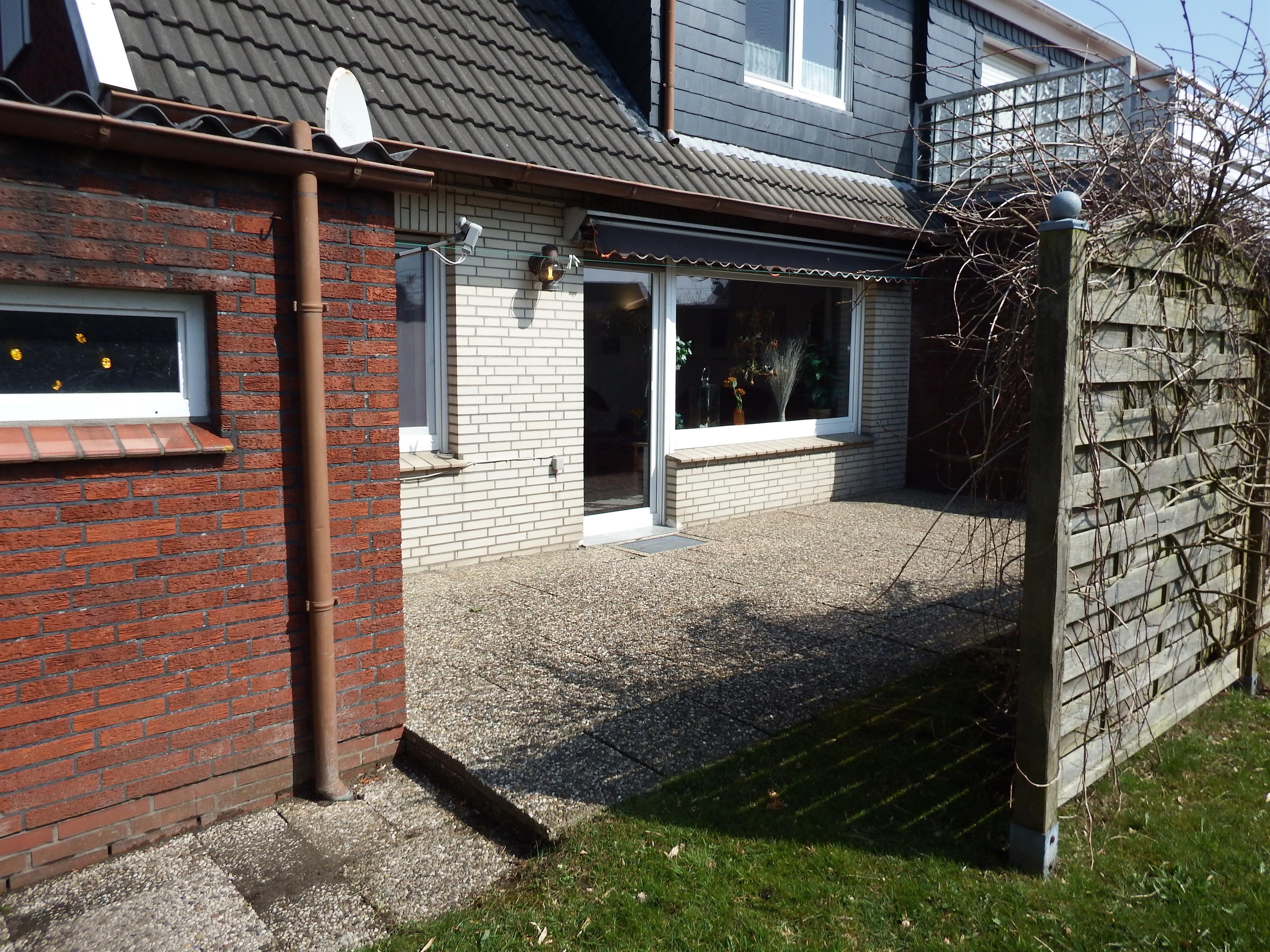 Die sonnige Terrasse hat eine Markise und Sichtschutzwände zum angrenzenden Garten. Im Garten können Ihre Kids sich auf einen großen Sandkasten freuen.