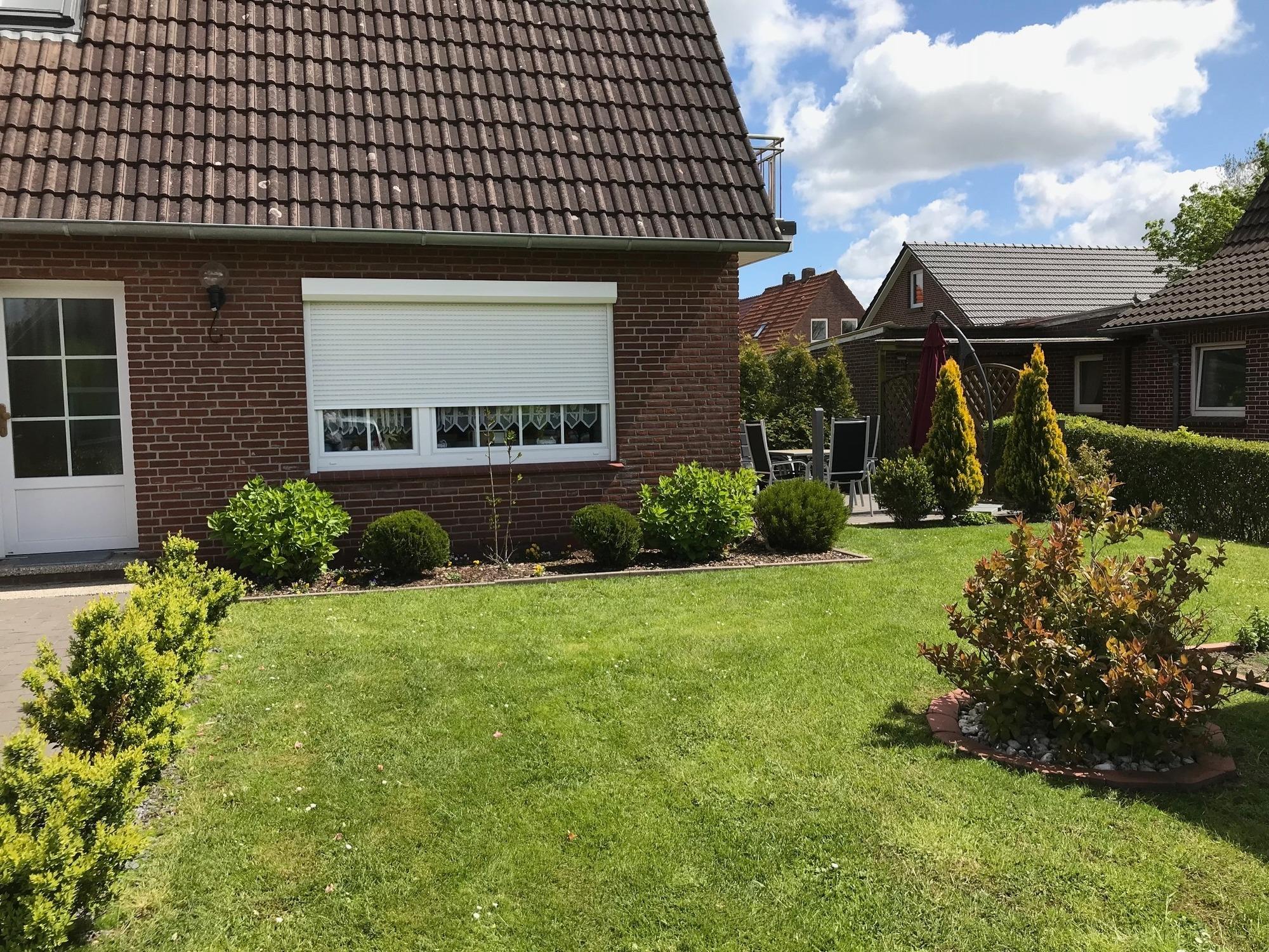 Schöne Ferienhaushälfte mit eigenem Eingang, Terrasse, komplett umzäunten Garten und PKW-Stellplatz, im ruhigen Küstenort Dornum und nicht weit vom UNESCO Weltnaturerbe ostfriesischen Wattenmeer/Nordseeküste entfernt.