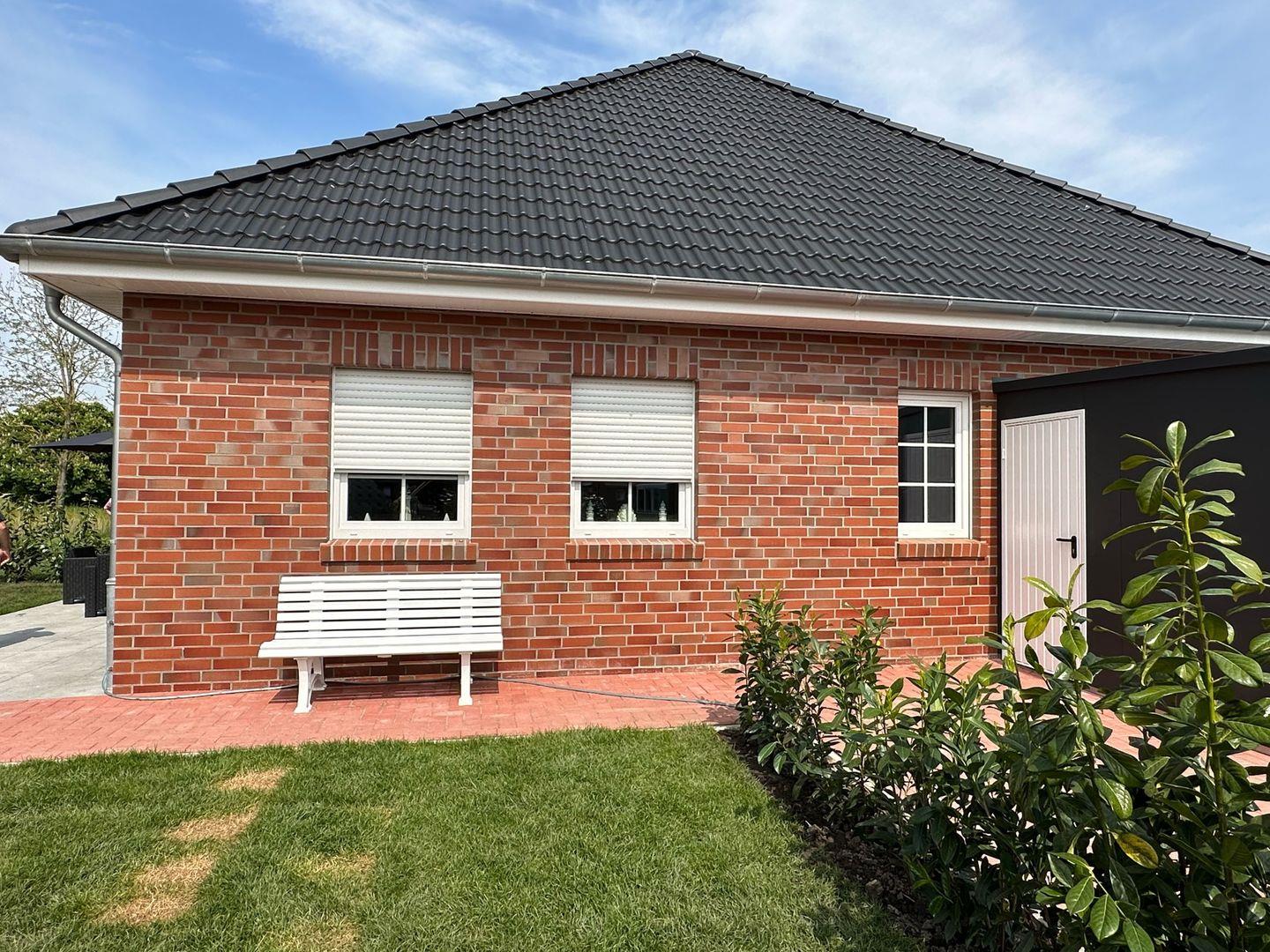 Neu erbaute Doppelhaushälfte (2023) in ruhiger Lage in Dornum, ideal für 4 Personen und ein Kleinkind. Highlights sind ein exklusives Saunafass im Garten zur Alleinnutzung, zwei Schlafzimmer mit Boxspringbetten, zwei moderne Bäder, voll ausgestattete Küche und großzügiges Wohnzimmer. Die sonnige Terrasse und der Garten laden zum Entspannen ein. Haustiere sind nicht erlaubt. PKW-Stellplatz und Fahrradabstellraum sind vorhanden.