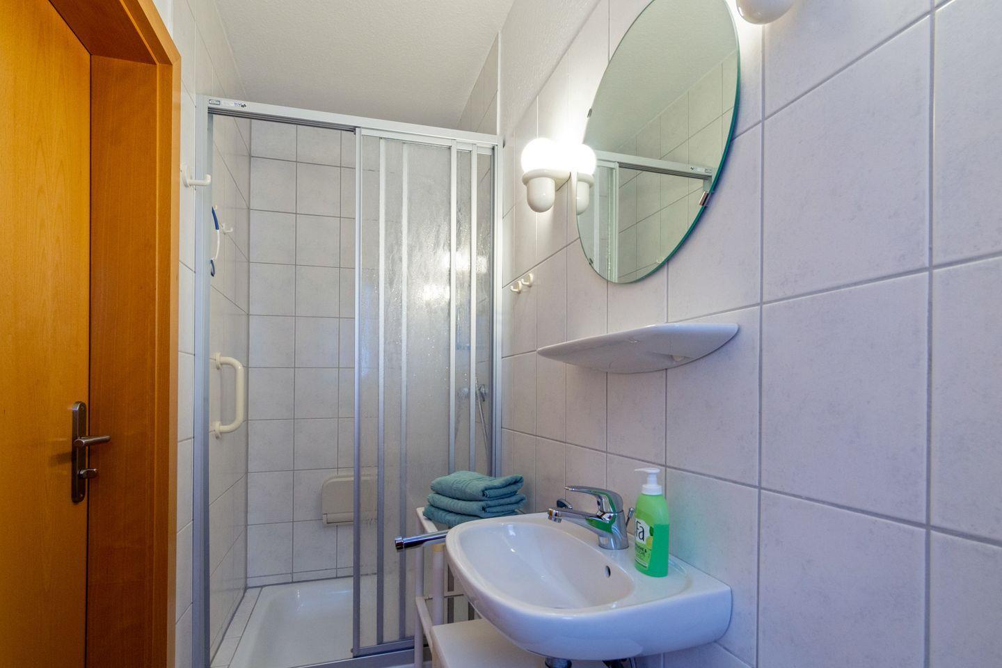 Im Erdgeschoss befindet sich der großzügige Wohn- und Essbereich, eine voll ausgestattete Küche sowie ein modernes Duschbad mit WC. Im Obergeschoss finden Sie zwei komfortable Schlafzimmer – eines mit einem Ehebett und eines mit zwei Einzelbetten. Zusätzlich gibt es ein weiteres Duschbad mit WC. Über eine platzsparende Raumspartreppe gelangen Sie von einem der Schlafzimmer in ein weiteres Zimmer ohne Tür, das mit einem Schlafsofa ausgestattet ist und zusätzlichen Schlafraum bietet.