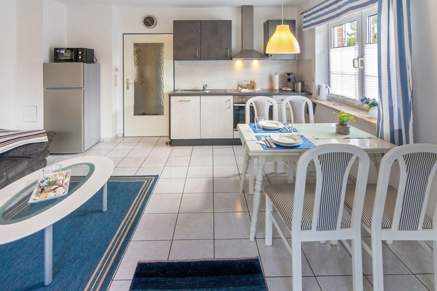 Die „Kleine Möwe“ ist eine Nichtraucherwohnung mit Privatparkplatz und Abstellraum für Fahrräder – ideal für einen erholsamen Nordseeurlaub.