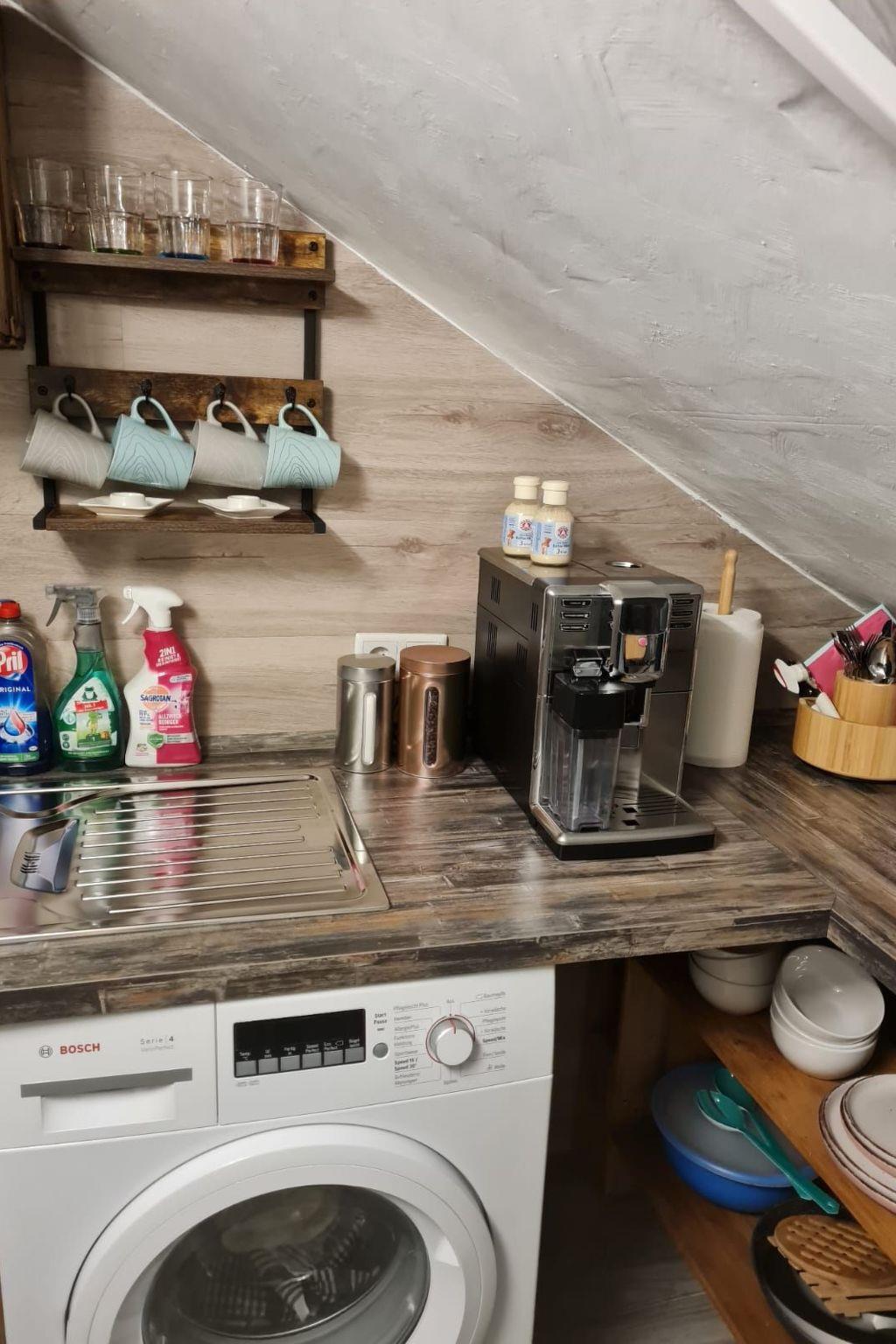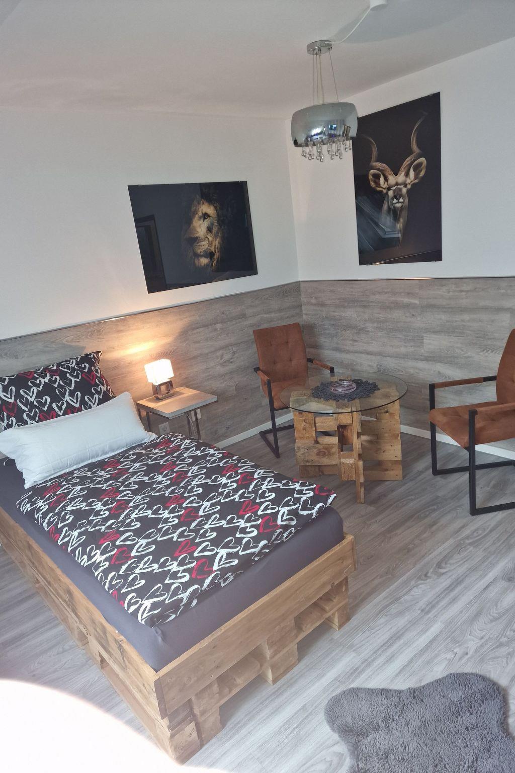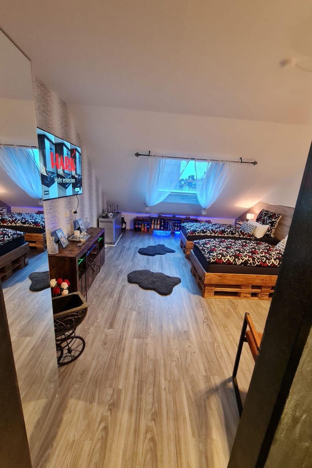 This unique accommodation has been designed with great attention to detail. The beds and kitchen were handmade from old pallets, creating a rustic and cosy charm. Each board has been refurbished by hand, so no new materials have been used. As you can see in the pictures, the bathroom has also been completely remodelled with small refined lighting details. Enjoy your stay in this special holiday flat and discover Dortmund in a unique ambience!