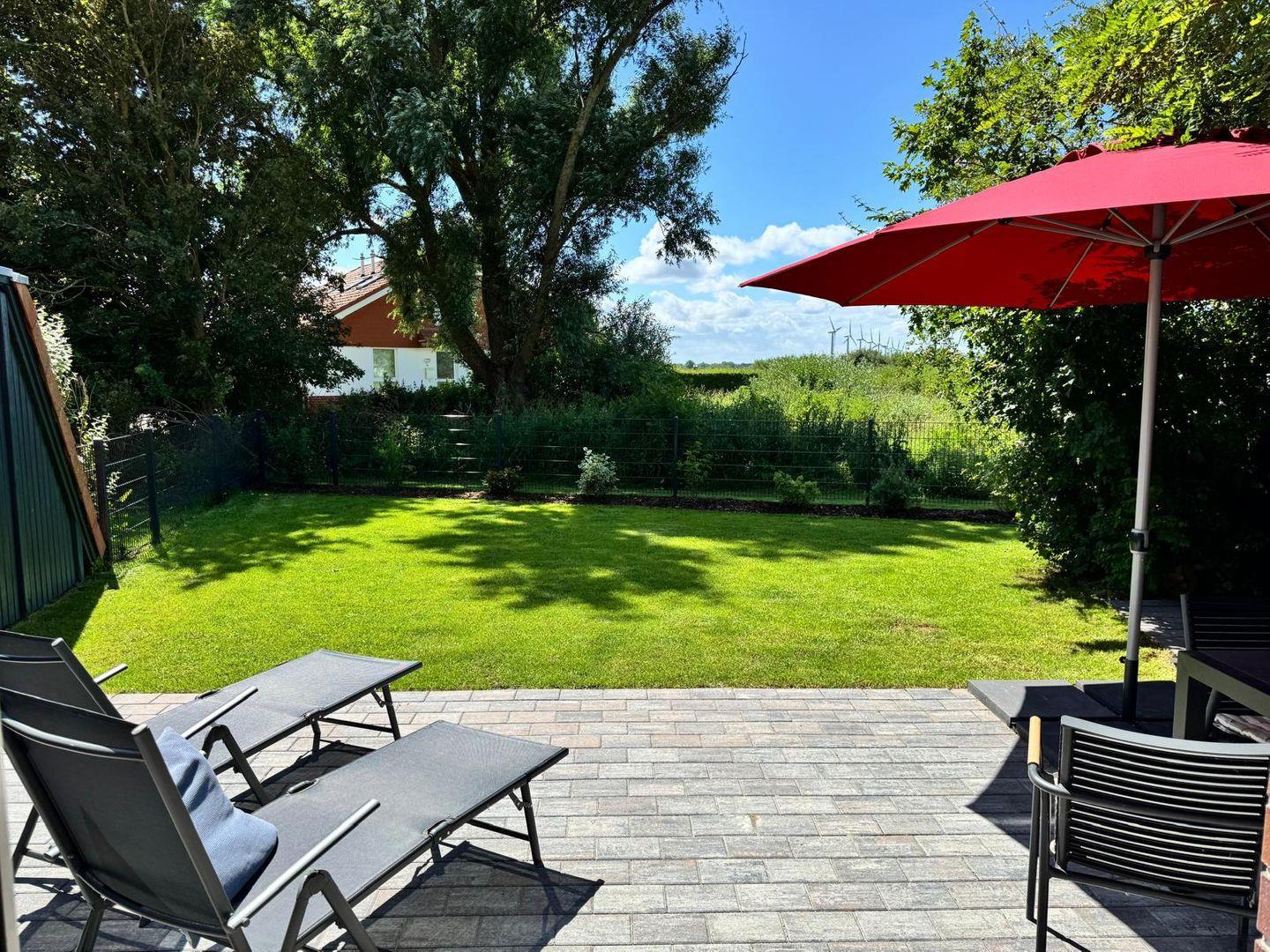 Doch das Herzstück des Ferienhauses ist die großzügige neu angelegte Terrasse, die Sie nach einem aufregenden Tag an der Nordsee verzaubern wird. Hier können Sie entspannen, die frische Seeluft genießen oder den Tag mit einem Barbecue ausklingen lassen, denn ein Grill steht Ihnen zur Verfügung. Der Garten komplett eingezäunte Garten mit Blick in Grüne wird besonders von Familien geschätzt – hier können die Kinder spielen, die Erwachsenen sich erholen und Ihre vierbeinigen Familienmitglieder herumtollen.