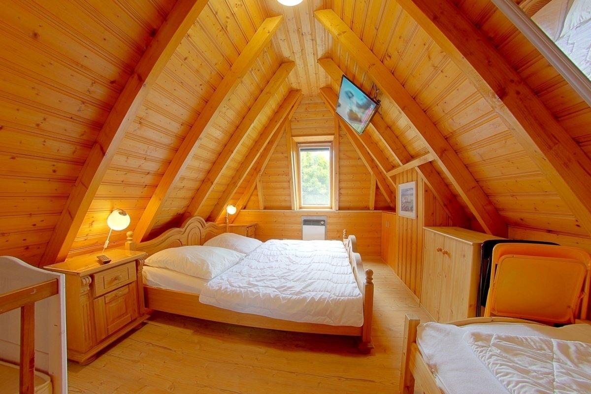 Im Obergeschoss befinden sich zwei getrennte Schlafräume für 4 Personen, sowie ein Kinderbett und TV im Elternschlafzimmer, welches mit einem Doppelbett ausgestattet ist.