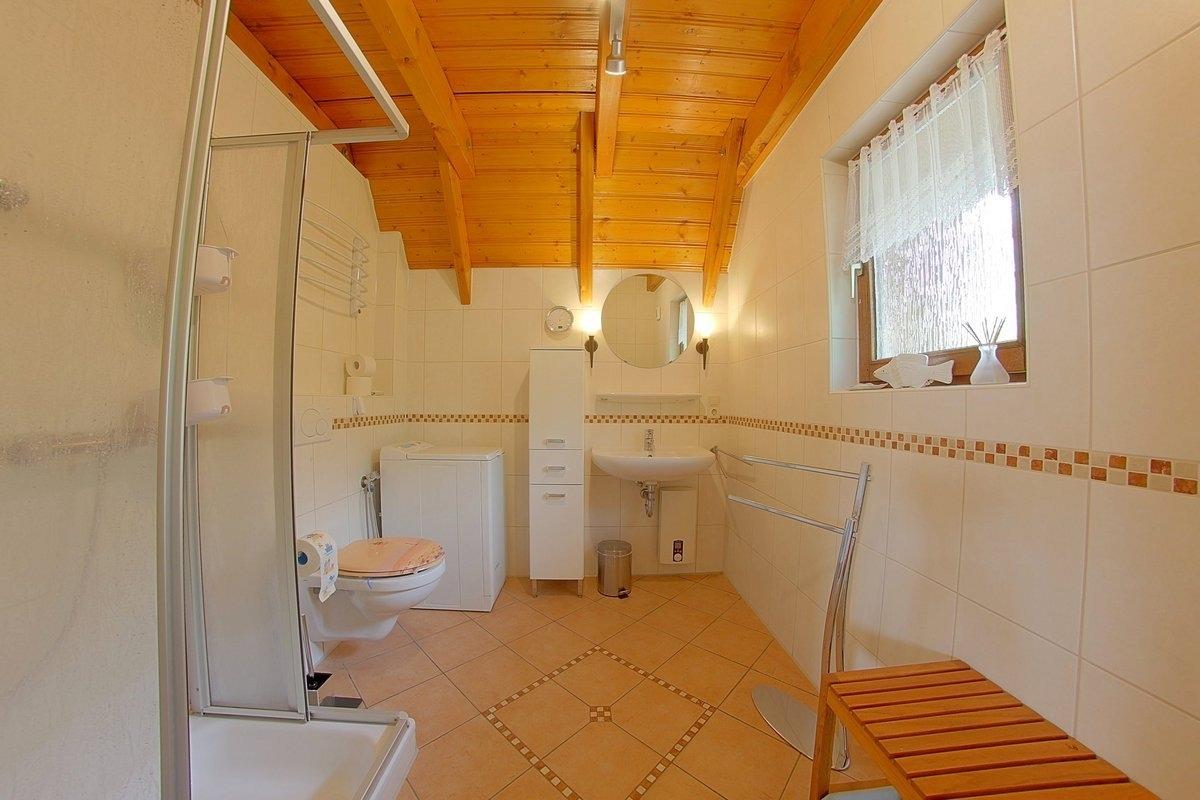 Ein helles, modernisiertes Duschbad mit Waschmaschine steht Ihnen ebenfalls im Erdgeschoss zur Verfügung.