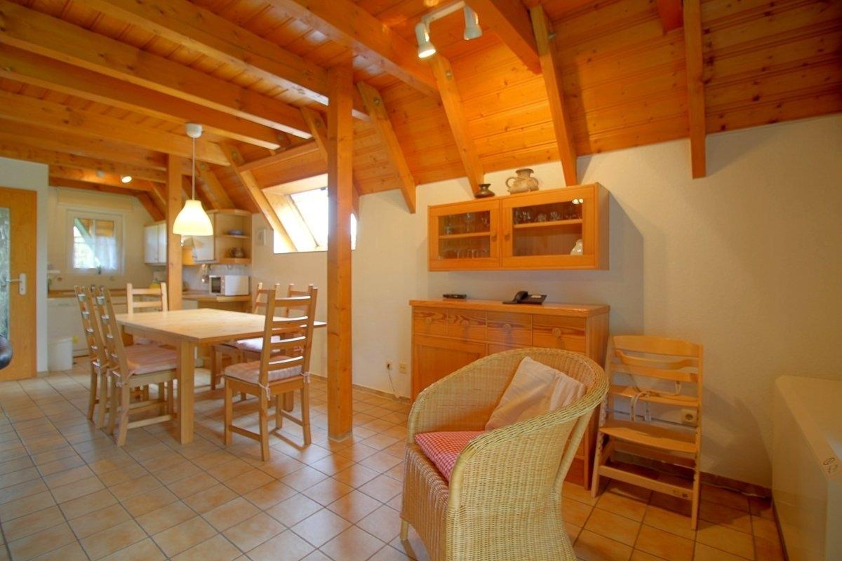 Das Haus bietet Ihnen im Ergeschoss einen komplett gefliesten Wohn-, Ess- und Küchenbereich, sowie ein helles Duschbad mt Fenster. Eine bequeme Sitzgarnitur bietet Platz für die ganze Familie abends vor dem Kaminofen, wenns draußen mal wieder frischer wird.
