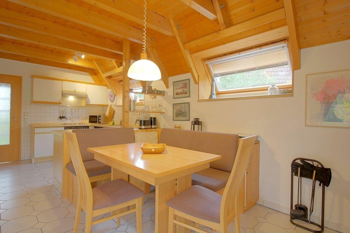 Im gefliesten Erdgeschoss mit offenem Wohn-, Ess- und Küchenbereich ist Platz für die ganze Familie. Gemütliche Sitzmöbel , eine geräumige Essecke mit Eckbank und eine voll ausgestattete Küche stehen Ihnen hier zur Verfügung. Großer Flat-TV 55 Zoll und ein Kaminofen für die kühle Jahreszeit, sowie kostenloses schnelles Internet mit Glasfaserkabel machen Ihnen den Aufenthalt so angenehm wie möglich.