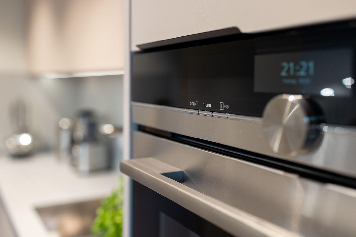 Im offenen Wohnbereich genießt du lichtdurchflutete Räume mit moderner Einrichtung. Ein gemütliches Sofa, Smart-TV, Essbereich und die voll ausgestattete Küche mit Spülmaschine machen es dir leicht, dich wie zuhause zu fühlen. Durch die große Glastür gelangst du direkt auf den Balkon mit herrlichem Blick ins Grüne.