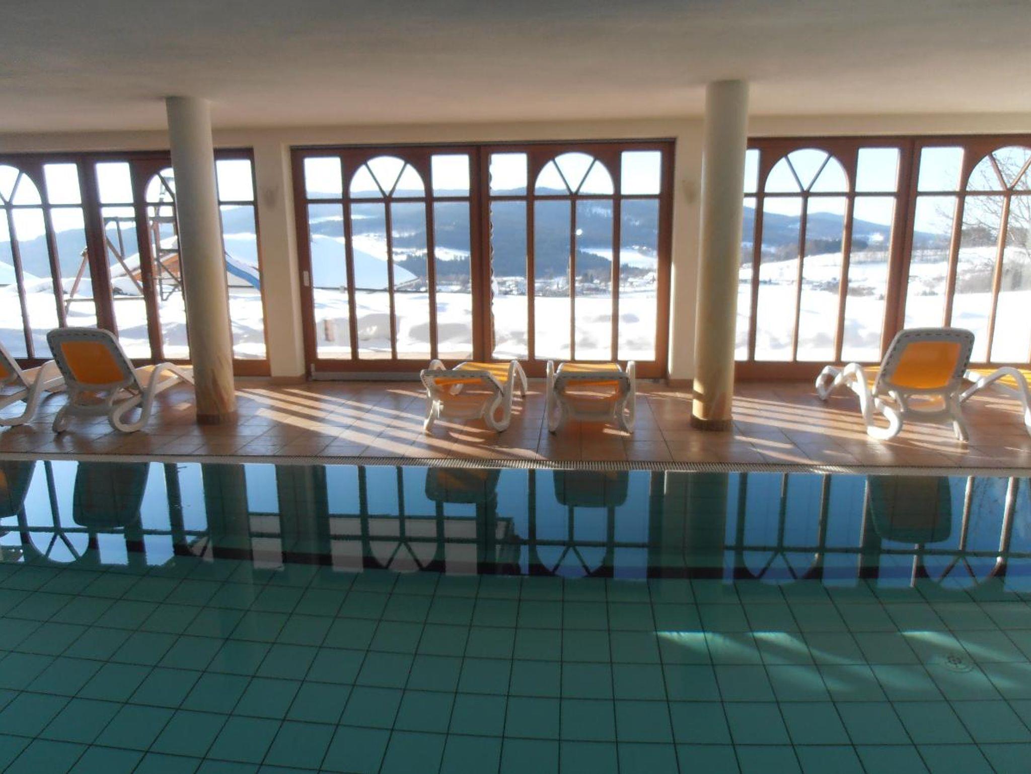 Entpannen Sie im großzügigen Hallenbad mit Liegewiese und lassen Sie