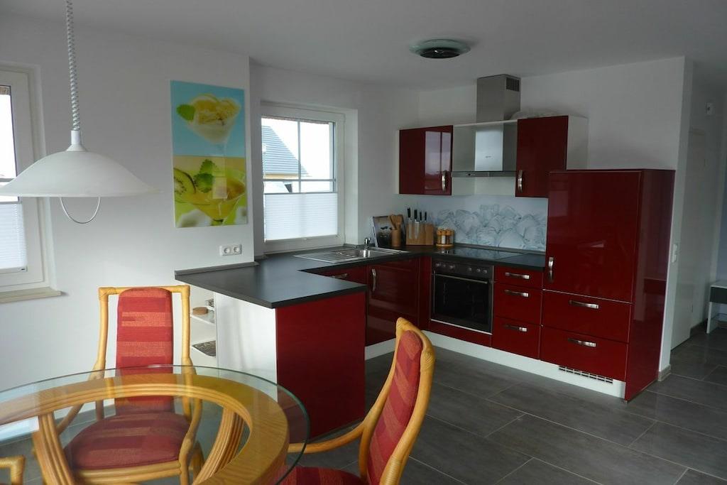 Ferieleiligheten Seeigel i første etasje, med et boareal på 66 kvadratmeter, er ideell for 2 voksne og et barn. Leiligheten har en stor, attraktiv stue med et moderne, fullt utstyrt kjøkken, spiseplass, sittegruppe, peis og LCD-TV. Soverommet har en dobbeltseng. Det vakkert designede badet har en romslig dusj. Terrassen fører til hagen, som er møblert med grill, hagemøbler og solsenger, perfekt for avslapning. Huset tilbyr fantastisk utsikt over havet og øya Hiddensee. Ekstra senger, kjæledyr, alternative ankomsttider eller kortere opphold er tilgjengelig på forespørsel.