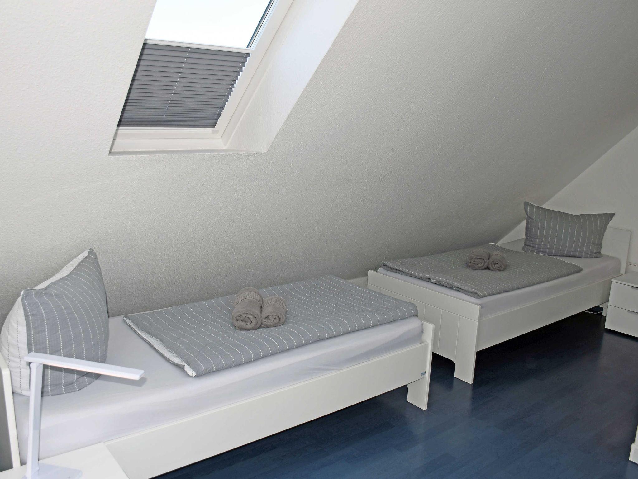 Das erste Schlafzimmer ist mit einem bequemen Doppel-Boxspringbett mit Nachttischen und Leselampen sowie einem Kleiderschrank ausgestattet. Im zweiten Schlafzimmer stehen zwei Einzelbetten mit Nachttisch und Leselampe, eine Schlafcouch 1,40 m breit, sowie eine Kommode.