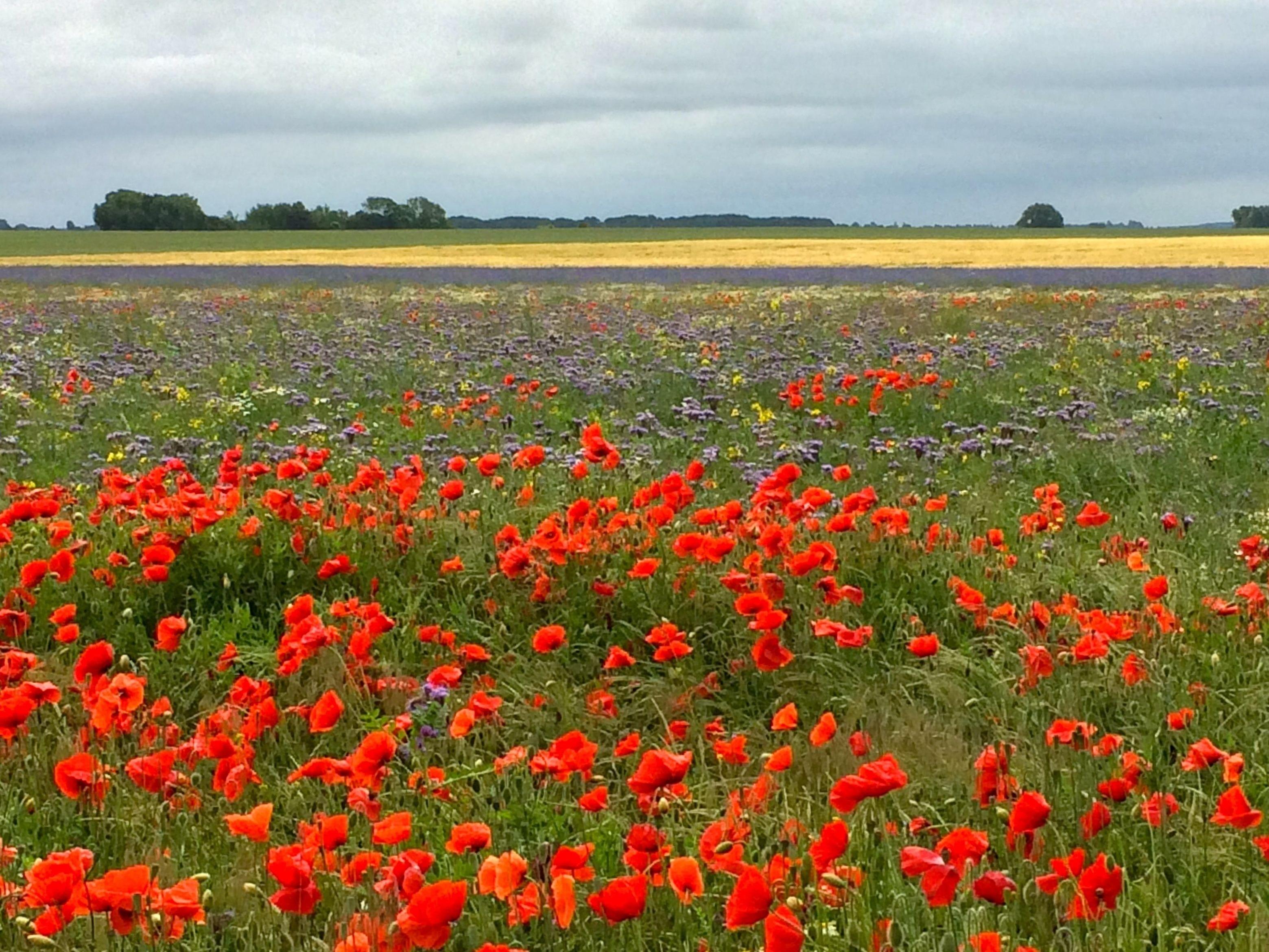 Große Sonnenterrasse mit grünem unverbautem Weitblick in die blühende Natur.
