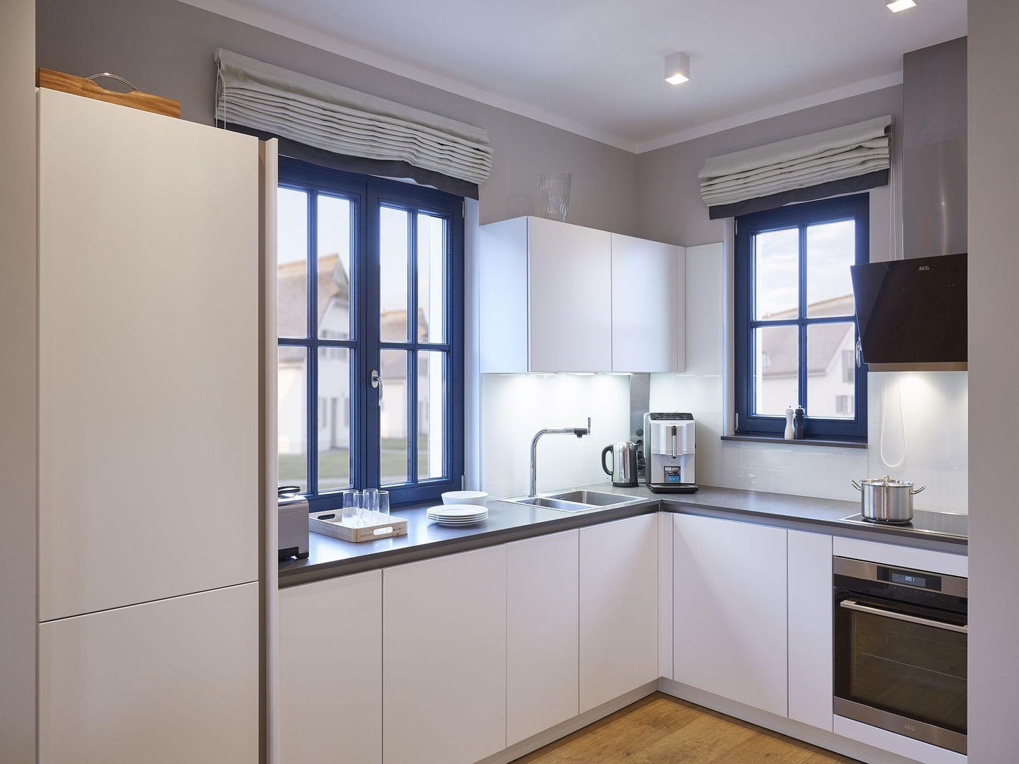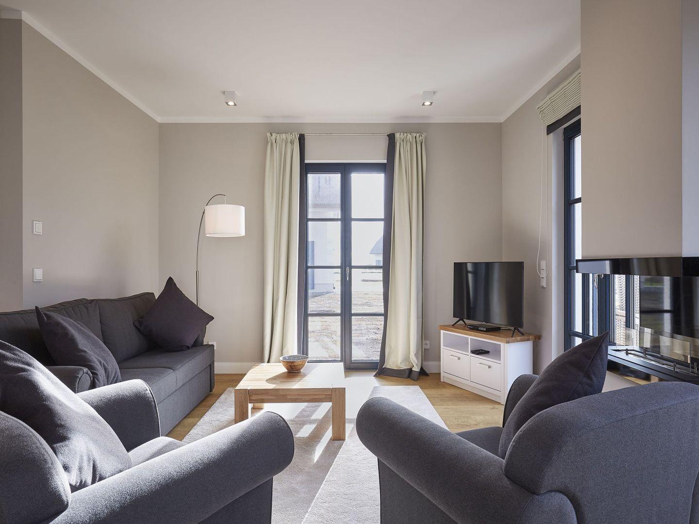 Diese neu erbaute Villa überzeugt mit Luxus pur und lädt Sie zu einem Frühstück auf Ihrer privaten Terrasse ein. Es erwartet Sie eine voll eingerichtete, hochwertige Qualitätsküche mit Geschirrspüler, Backofen, Kochfeld, Kaffeevollautomat, Wasserkocher und Toaster. Das Wohnzimmer verfügt über ein Schlafsofa, einen Kamin, einen LCD-Flachbildschirm, einen DVD-Player und eine Stereo-Anlage. Zwei Schlafzimmer sind mit bequemen Doppelbetten ausgestattet und bieten ausreichend Verstaumöglichkeiten. Das Vollbad überzeugt mit einer Badewanne, einer geräumigen Dusche, einem Waschbecken, einem WC und einem großen Spiegel. Zusätzlich gibt es ein Gäste-WC und eine Waschmaschine sowie einen Trockner.