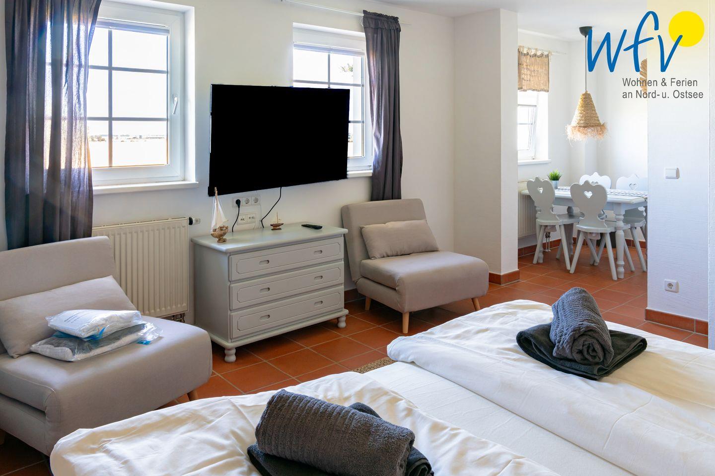 Die Ferienanlage umfasst 23 Ferienwohnungen. In unserem 31 m² großen Appartement "Sonnenhut" im 1. Obergeschoss erwartet Sie ein kombinierter Wohn-/Schlafraum mit bequemen Sitzgelegenheiten, Doppelbett (180 cm x 200 cm), Kochnische und Essplatz sowie ein Duschbad.
