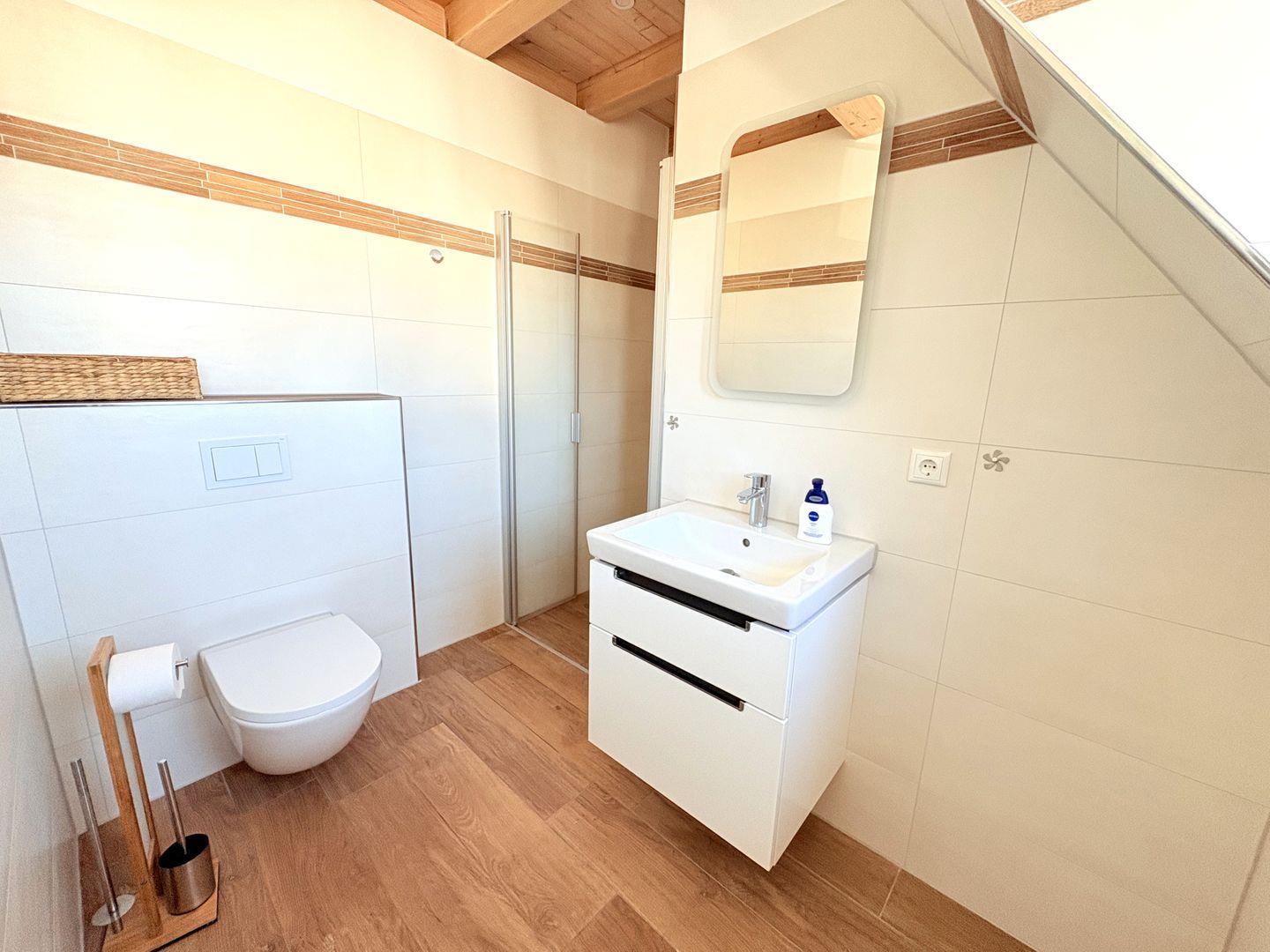 1 modernes Badezimmer mit Dusche und zusätzlichem Gäste-WC