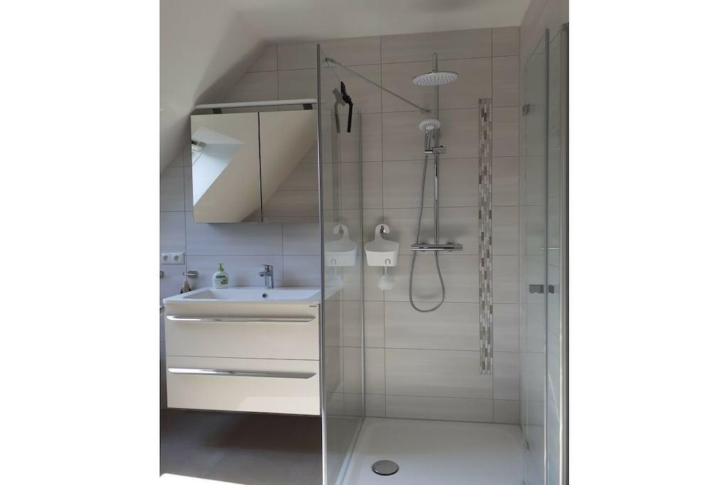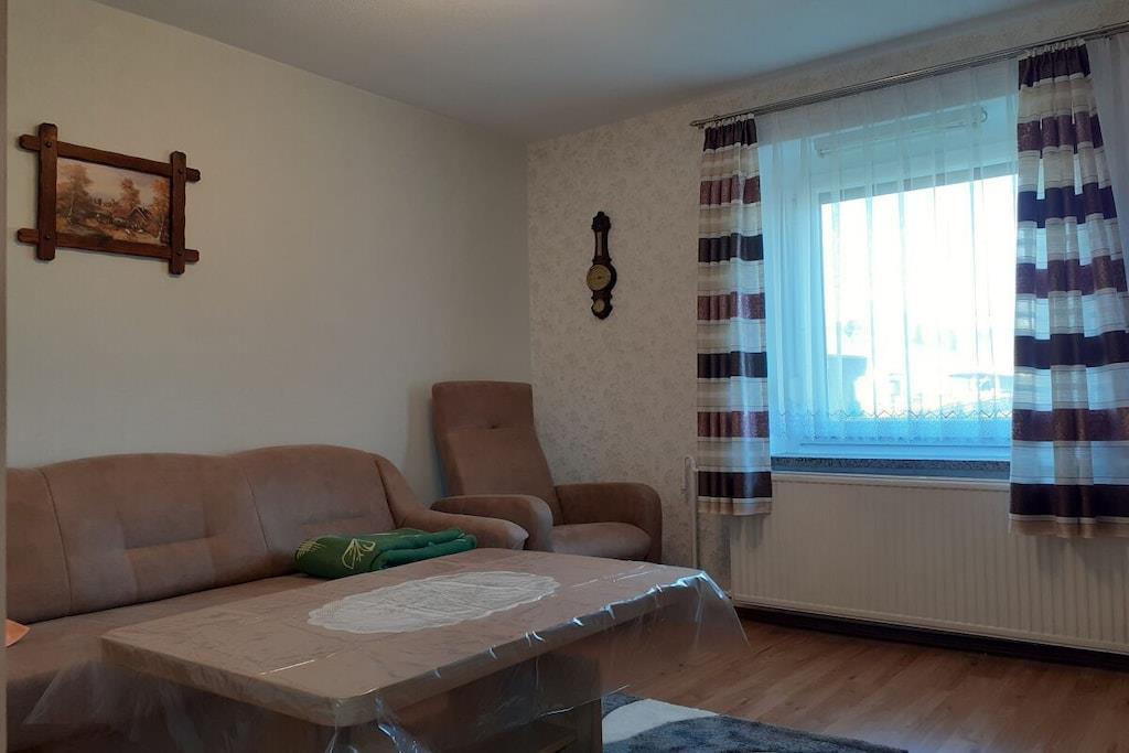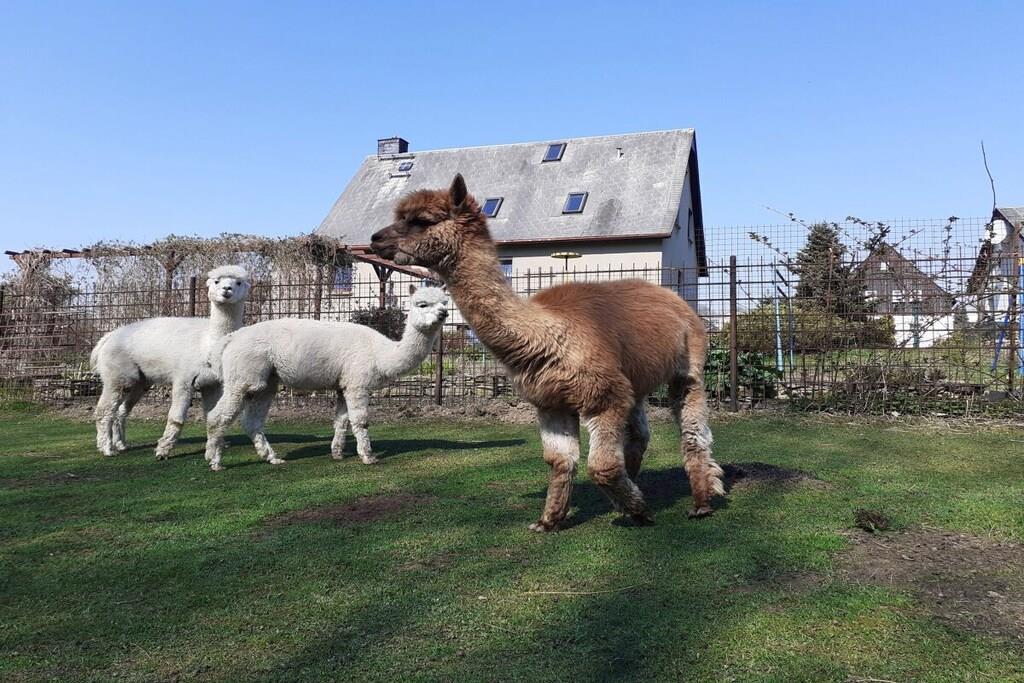 The apartment is located in our own house with a separate entrance and was completely renovated in 2021. It consists of a kitchen, a living room with a sofa bed, a bathroom with a shower, and a bedroom with a double bed. A travel cot and highchair are available. The kitchen is fully equipped. A flat-screen TV, radio, Wi-Fi, and a hairdryer are provided. Towels and bed linen are included. The garden features barbecue facilities and seating. Parking and bicycle storage are available at the house. Alpacas, chickens, quails, and birds also live on our property, and there is a herb garden for guests' use. Shops and restaurants are available in the village.