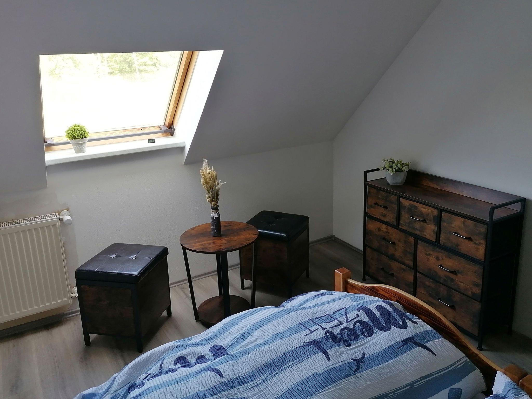 In unserem charmanten Dachgeschoss empfängt Sie ein helles, 19 m² großes Pensionszimmer. Die Einrichtung verbindet gekonnt moderne Gemütlichkeit mit authentischem, vorpommerschem Charakter. Naturbelassene Materialien und handwerkliche Finesse prägen das harmonische Ambiente. Verdunkelungsmöglichkeiten an den Fenstern sorgen für erholsamen Schlaf.