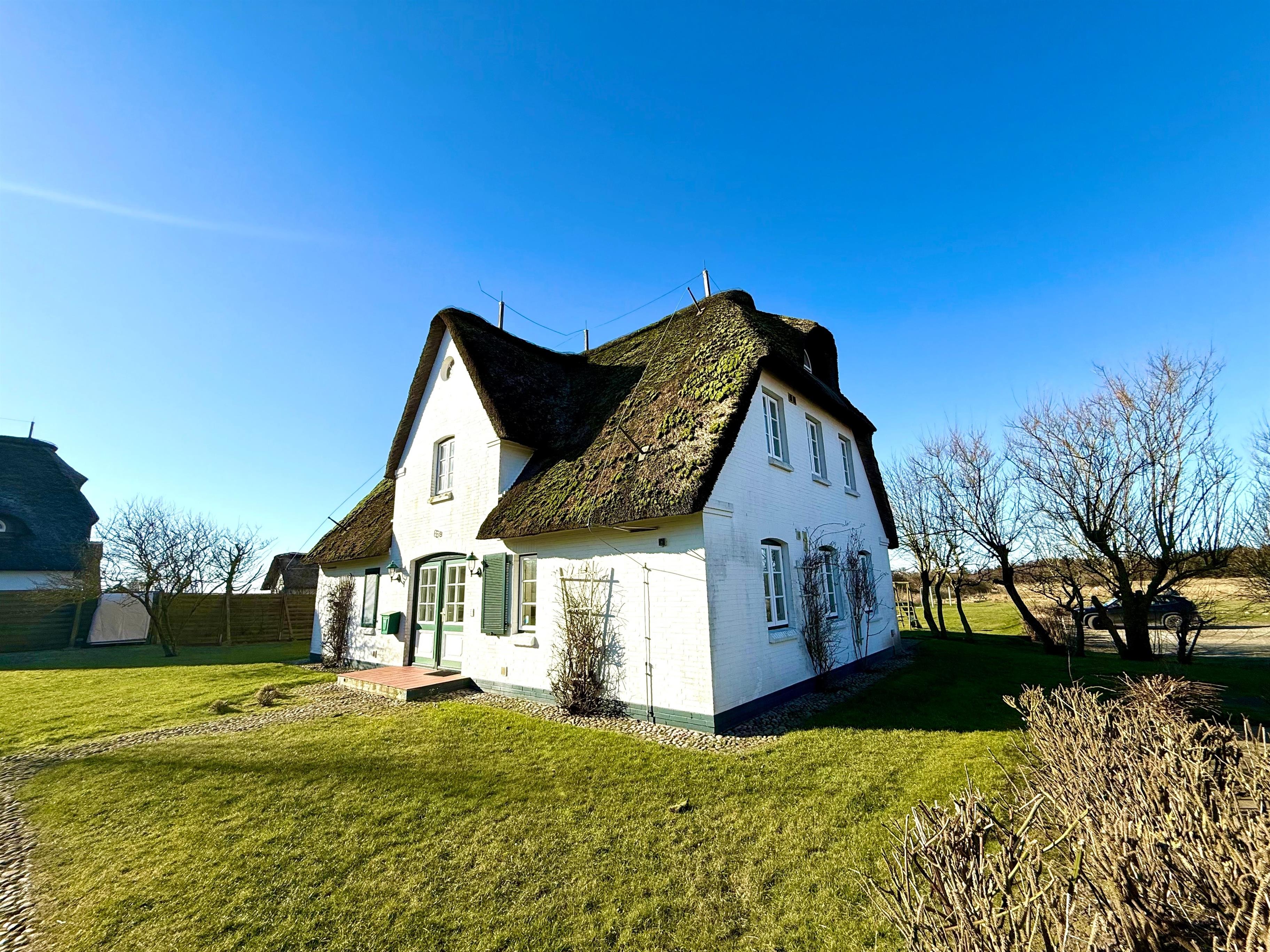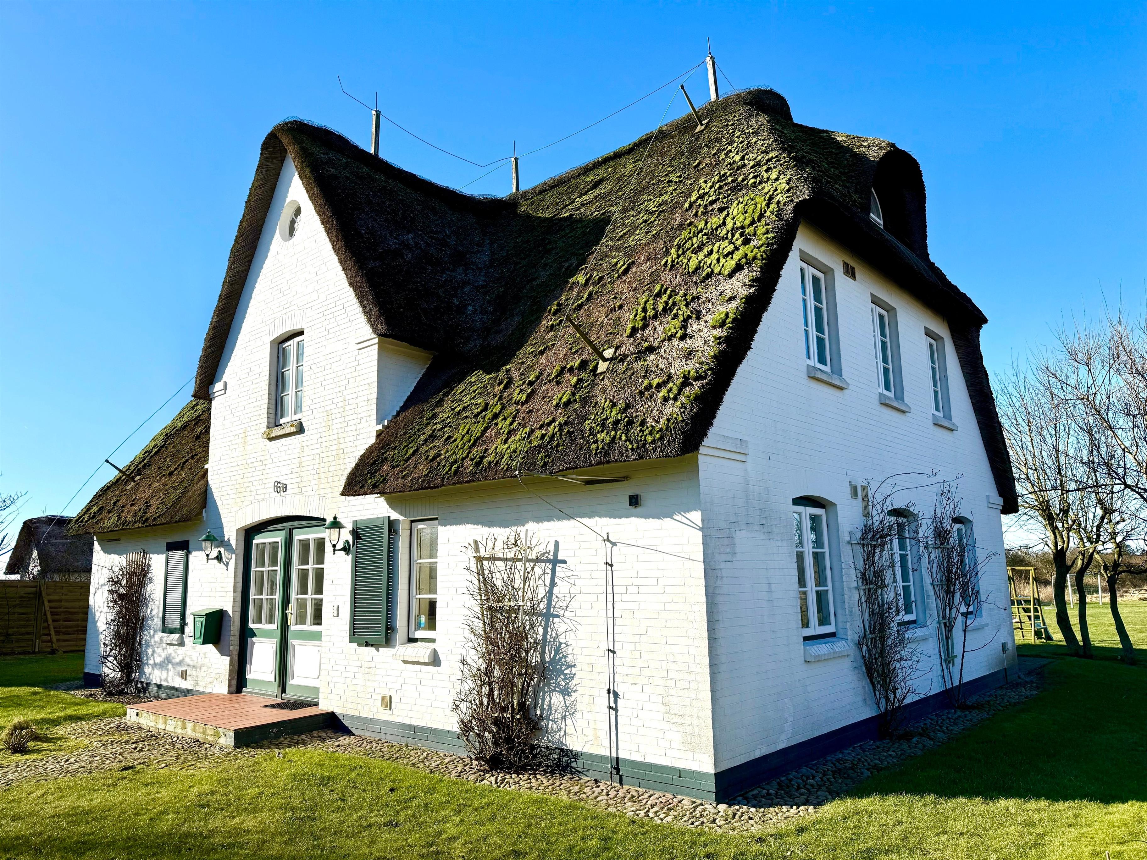 Diese attraktive Reetdach-Obergeschoss-Wohnung (50 m²) für 3 Personen in einem Einzelhaus mit 4 Wohneinheiten im Deichhof besticht durch Ruhe und Gemütlichkeit auf hohem Wohnniveau. Über die Diele gelangen Sie in das moderne Duschbad. Auf der linken Seite empfängt Sie ein "kleines" Schlafzimmer mit einem Einzelbett. Anschließend ersteckt sich der gemütliche, helle Essbereich mit modern ausgestatteter Küche und großzügigem Wohn-Wohlfühlbereich, der zu einem erholsamen und entspannenden Miteinander einlädt. Über eine Freitreppe gelangen Sie in den großzügigen Schlaf und Galeriebereich. Zu dieser Wohnung gehört ein PKW Stellplatz am Haus. In wenigen Fußmetern erreichen Sie den Hauswirtschaftsraum mit Waschmaschinen und Trocknern, auch zu Ihrer Verfügung. Im rückwärtigen Bereich steht Ihnen eine Picknickwiese mit Grillplatz und Sitzbänken zur Verfügung. Gleich daneben können sich Ihre Kinder auf dem großen Spiel- und Fußballplatz austoben. Vom Objekt aus haben Sie einen perfekten Ausgangspunkt für lange Spaziergänge am Strand und zur Wattwanderung nach Amrum, Fahrradtouren zu den Nachbarorten und in die Marsch und zu dem wohl schönsten Sonnenuntergang der Nordseeregion. Der Deichhof ist in der Gemeinde Dunsum angesiedelt, die im Westen der Insel Föhr liegt. Er liegt an der verkehrsberuhigten Ortsdurchfahrtstraße und reicht bis zu den weitläufigen Wiesenflächen, die direkt an den 500 m entfernt liegenden Deich der Nordsee reichen, mitten in die Natur eingebettet. Der Deichhof kann somit als Oase der Ruhe und Natürlichkeit betrachtet werden.