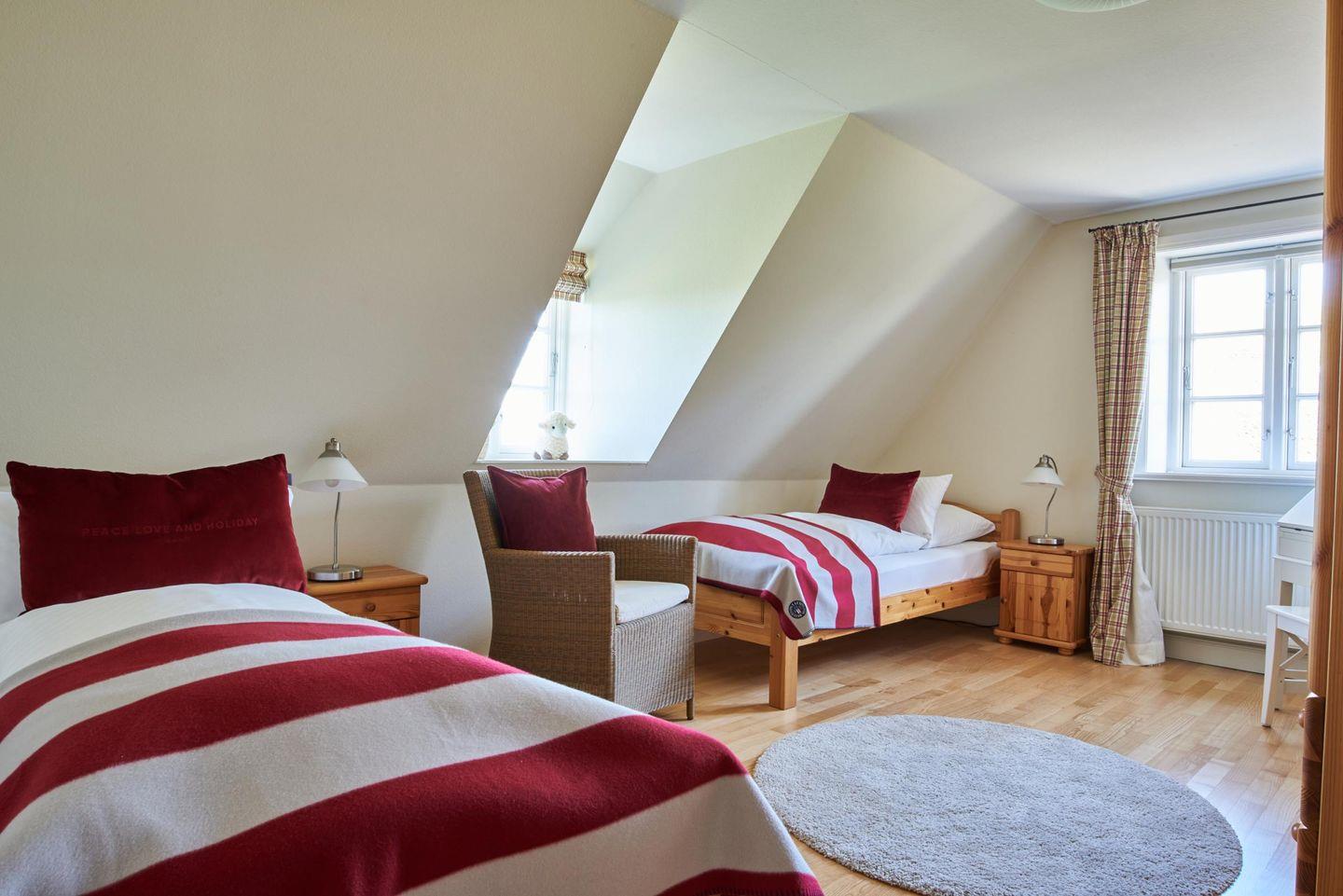 Das Lunhüs Lucia bietet Ihnen und Ihrer Familie auf etwa 200 m² viel Platz, einen entspannten Urlaub zu verbringen – gerne auch mit Hund. Die komplett ausgestattete Küche (Geschirrspüler, Induktions-Kochfeld, Backofen, Mikrowelle, Kühl-Gefrierschrank, Espresso-Pad-Maschine etc.) lädt mit großem ausziehbarem Esstisch und Eckbank zum geselligen Verweilen ein. Im Hauswirtschaftsraum gibt es eine weitere Schrank-Zeile mit Kühl-/Gefrier-Kombi sowie Waschmaschine und Trockner. Das Arbeitszimmer mit großem Schreibtisch hat einen externen PC-Anschluss sowie einen Farbdrucker. Im großzügigen Wohnraum stehen eine bequeme Polster-Gruppe, eine separate gemütliche Sitzecke und ein hochwertiges TV-Gerät sowie Auswahl von Büchern. Weitere Fernseher finden sich oben in zwei der drei Schlafzimmer. Zwei sind mit Doppelbetten und hochwertigen Einbaumöbeln ausgestattet, ein drittes Schlafzimmer hat mit Einzelbetten. In allen Schlafräumen sind Parkettböden verlegt. Die geräumigen Bäder haben Duschkabinen und jeglichen Komfort. Eine Wickelkommode, ein Baby-Bett und ein Hochstuhl sind vorhanden. Haustiere dürfen sich ausschließlich im Erdgeschoss und im Garten aufhalten. Auf dem Grundstück ist Platz für zwei bis drei Pkw und für Ihre Räder steht ein Fahrradständer zur Verfügung. Eine Ladestation für E-Autos rundet das Angebot ab.