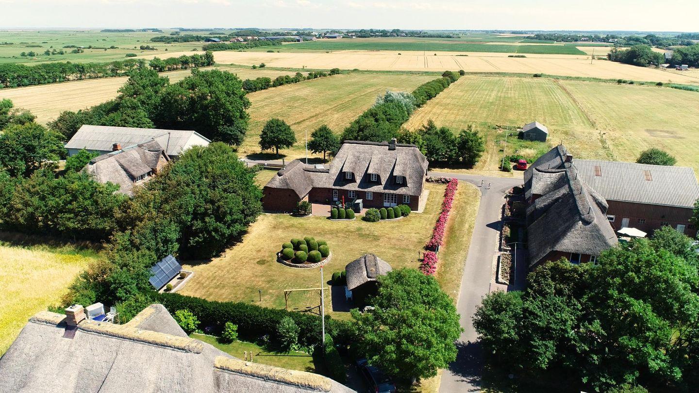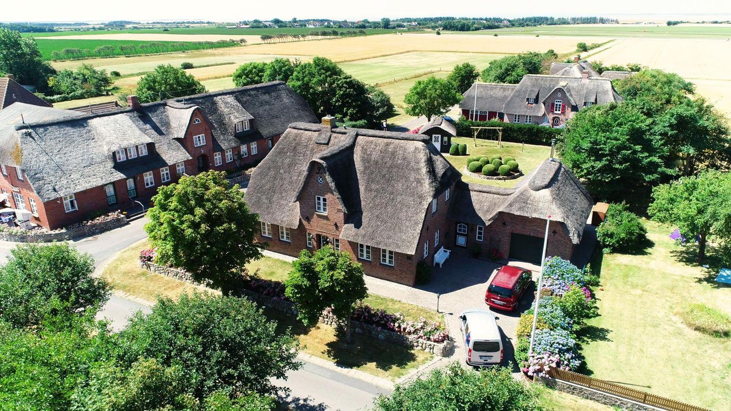 Pure Wohlfühlatmosphäre garantiert dieses, 2002 auf einem 1.500 m² großen Grundstück errichtete, exklusive Reetdachhaus. Die Räume sind offen gestaltet und lichtdurchflutet. Im Erdgeschoss kommt man von der großzügigen Diele in ein gut 40 m² großes Wohnzimmer, in eine geräumige Küche mit Ess-Ecke, in ein Arbeitszimmer und ein Duschbad. Ein doppelter Kachelofen und beheizte, durchgängig geflieste Fußböden sorgen für Behaglichkeit an kühleren Tagen. An die Küche schließt sich ein Hauswirtschaftsraum mit Nebeneingang an. Im Obergeschoss befinden sich drei große Schlafzimmer und zwei Bäder, davon eines en Suite mit Wannenbad und Regenduschen. Vom Wohnzimmer und vom Hauswirtschaftsraum geht es hinaus auf die sonnigen Terrassen mit Wind- und Sichtschutz, wo ein XL-Strandkorb und diverse Gartenmöbel warten. Umrahmt wird das Lunhüs von einem inseltypischen Friesenwall und einem gepflegten Garten. Die Ökoofen-Pelletheizung modernster Bauart, gekoppelt mit Solarthermie im Garten, sorgt für wohlige Wärme aus regenerativer Energie. Eine Bio-Infrarot-Saunakabine im Gartenhaus lädt zum Entspannen ein.