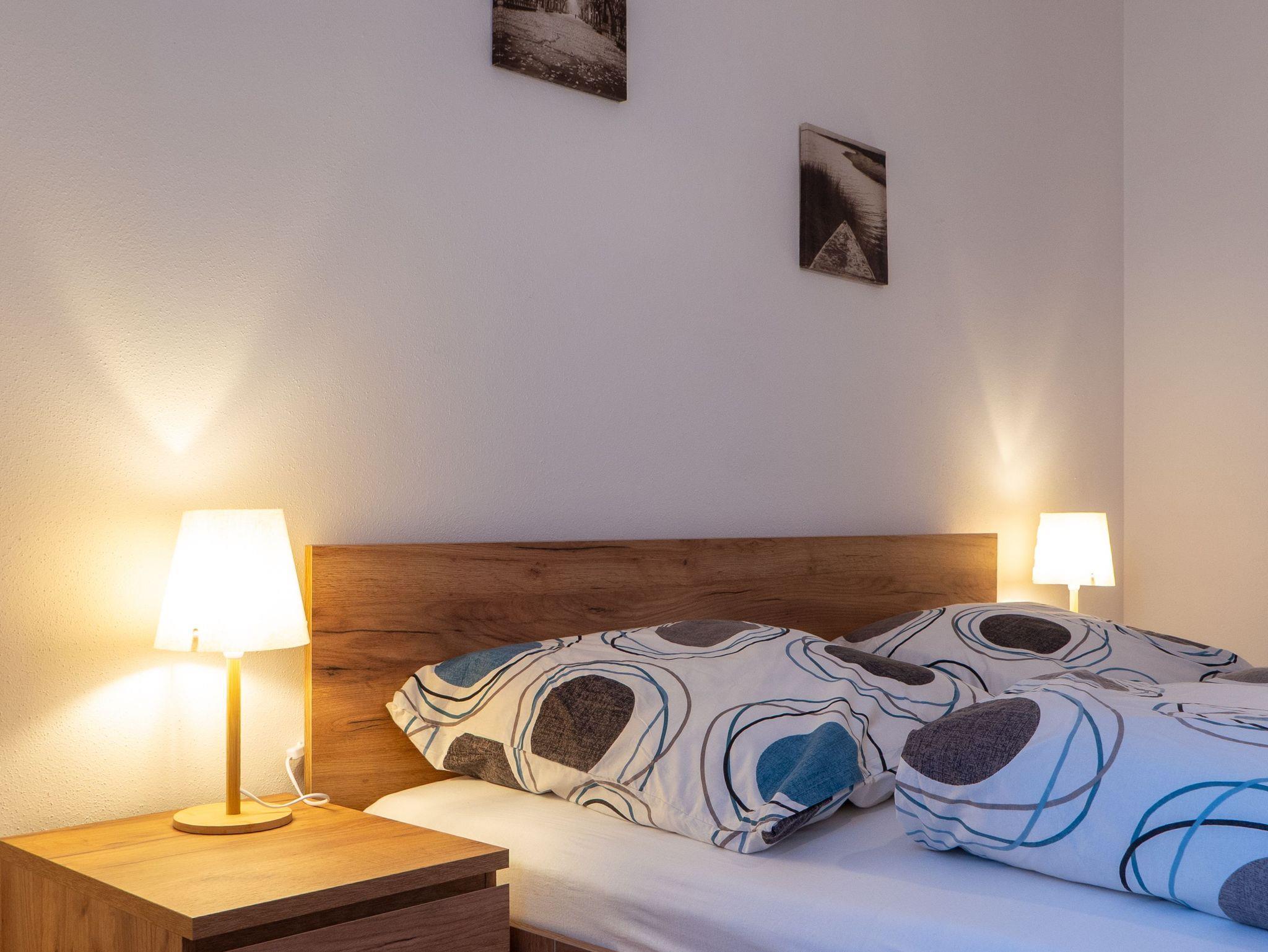 Das Schlafzimmer ist mit Doppelbett, Kommoden und Kleiderschrank ausgestattet. Das Bad mit Dusche und WC verfügt zusätzlich über eine kostenlos nutzbare Waschmaschine. Bettwäsche und Handtücher werden kostenlos gestellt. Auf Anfrage stellen wir Ihnen sehr gerne ein Babybett und einen Hochstuhl kostenfrei zur Verfügung.