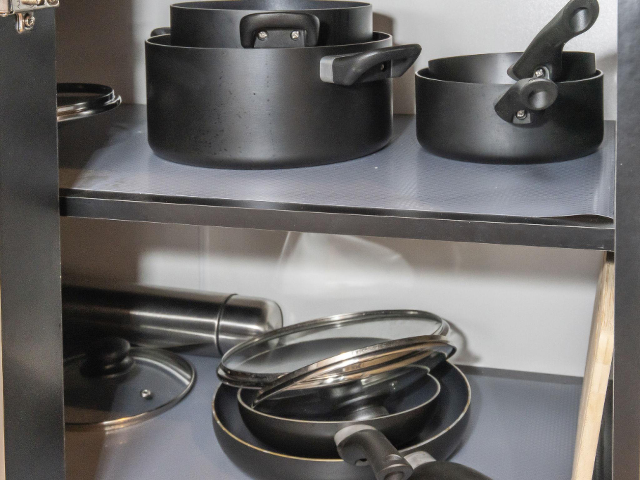 kettle, toaster, pots, pans, bowls, colander and much more.