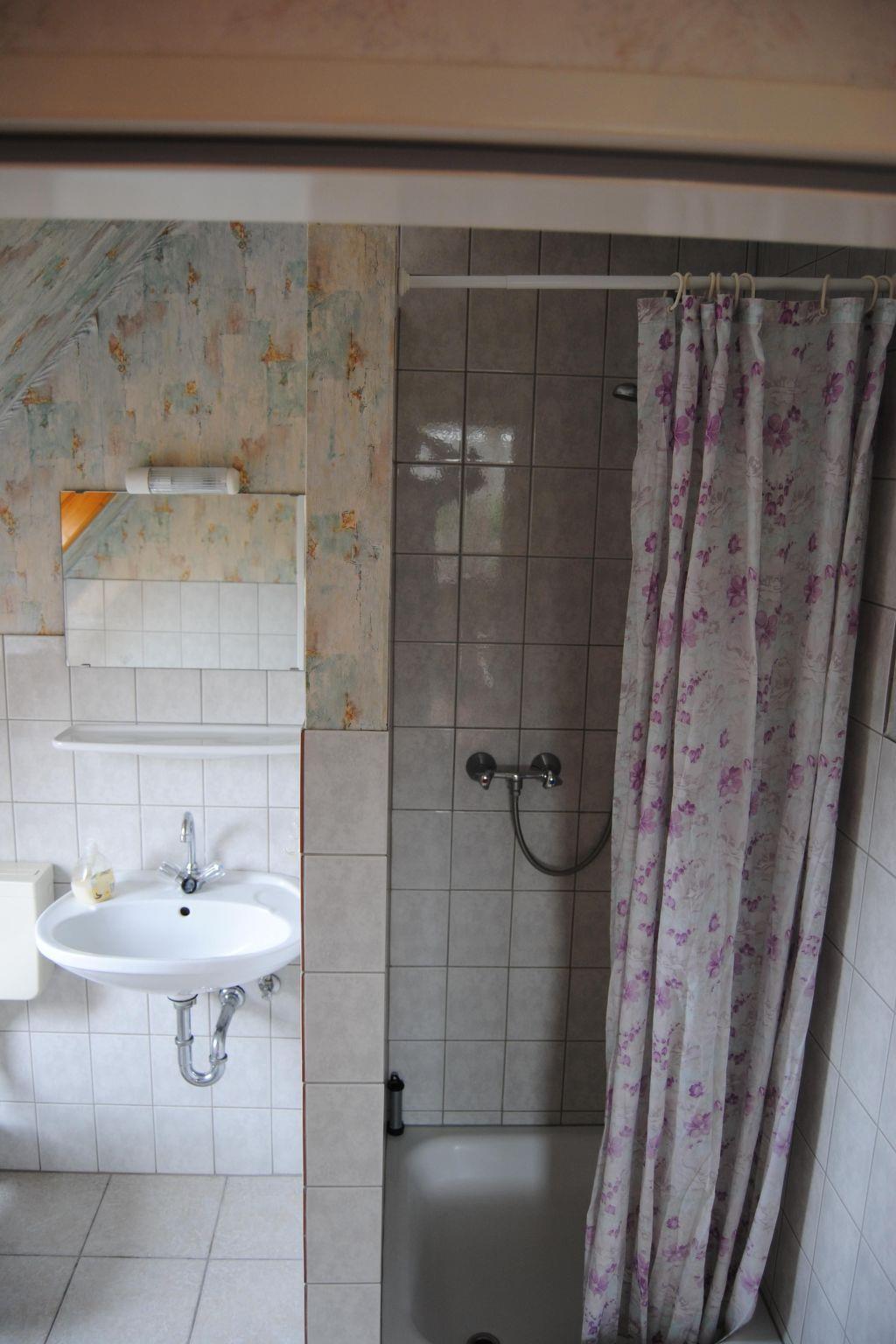 The one-bedroom flat is cosily furnished and offers space for a maximum of three people and is approx. 35m² in size. The room is furnished with a double bed (2 x 0.90m x 2.00m) and a single bed (0.90m x 2.00m). It has its own kitchen and bathroom with shower and WC. The kitchenette is fully equipped with cutlery and crockery and also has a coffee machine and kettle. There is central heating and radiators in every room.