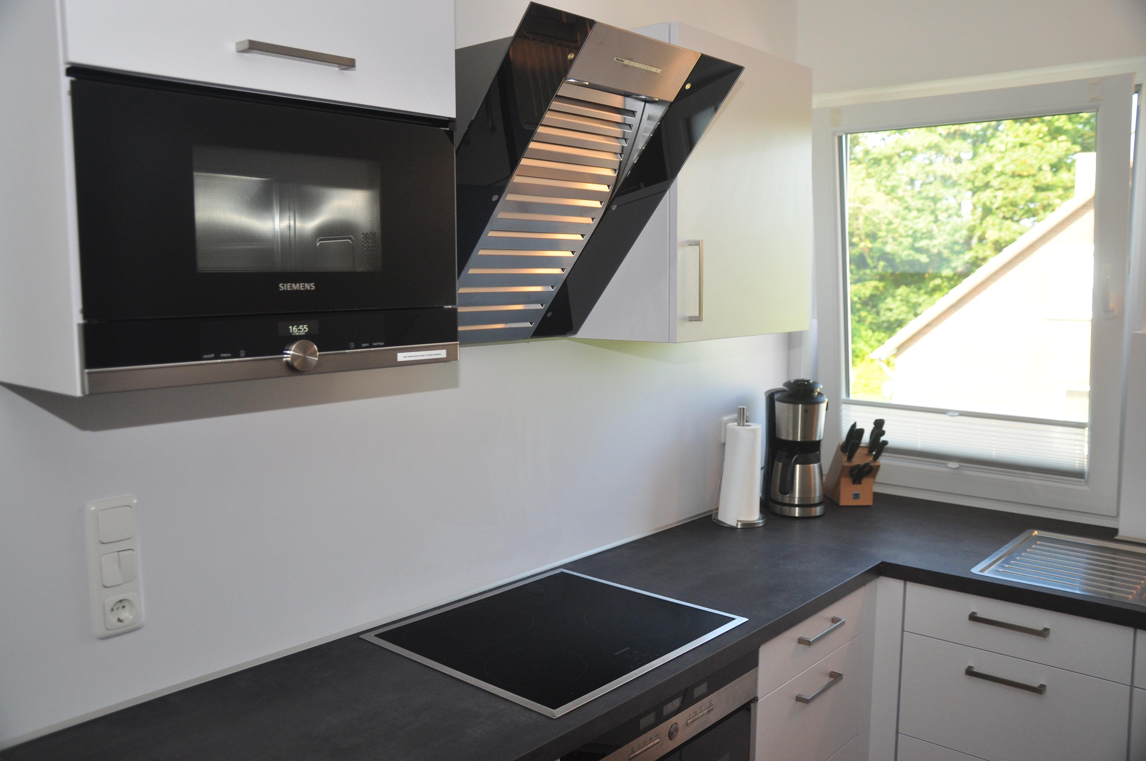 Die hochwertige Küche der Marke LEICHT ist, wie alle anderen Ausstattungen dieser Wohnung, hochwertig, modern und funktionell eingerichtet. Induktionskochfeld, Backofen, Mikrowelle, Geschirrspüler, großer Kühlschrank mit Gefrierfach, ausreichend Arbeitsfläche, sowie viele kleine und große Küchenhelfer werden Ihnen dabei behilflich sein die tägliche Küchenschlacht zu meistern :-) und am großen Esstisch mit 4 bequemen Stühlen zu genießen.