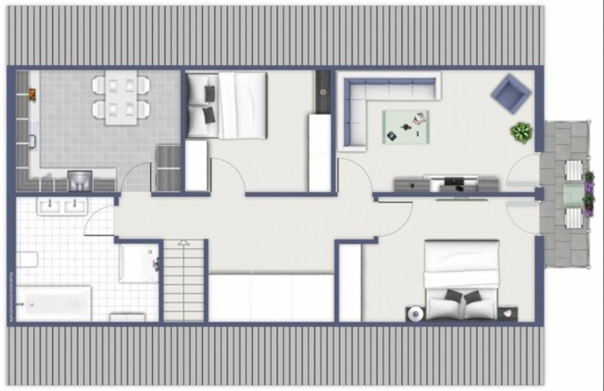Die 65 qm-Wohnung befindet sich im 1.Stock und ist für bis zu 4 Personen komplett und sehr hochwertig und modern ausgestattet.