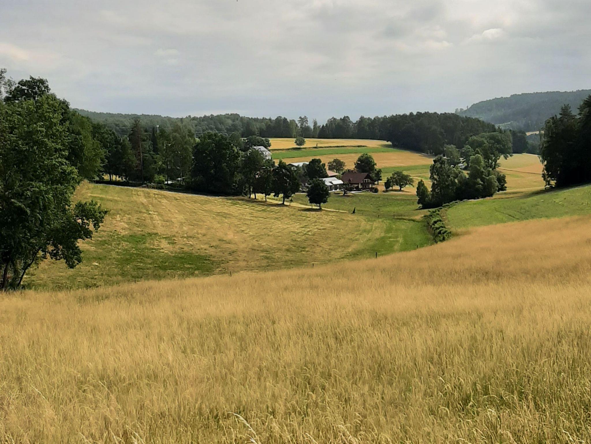 Pferdekoppeln und Wälder.