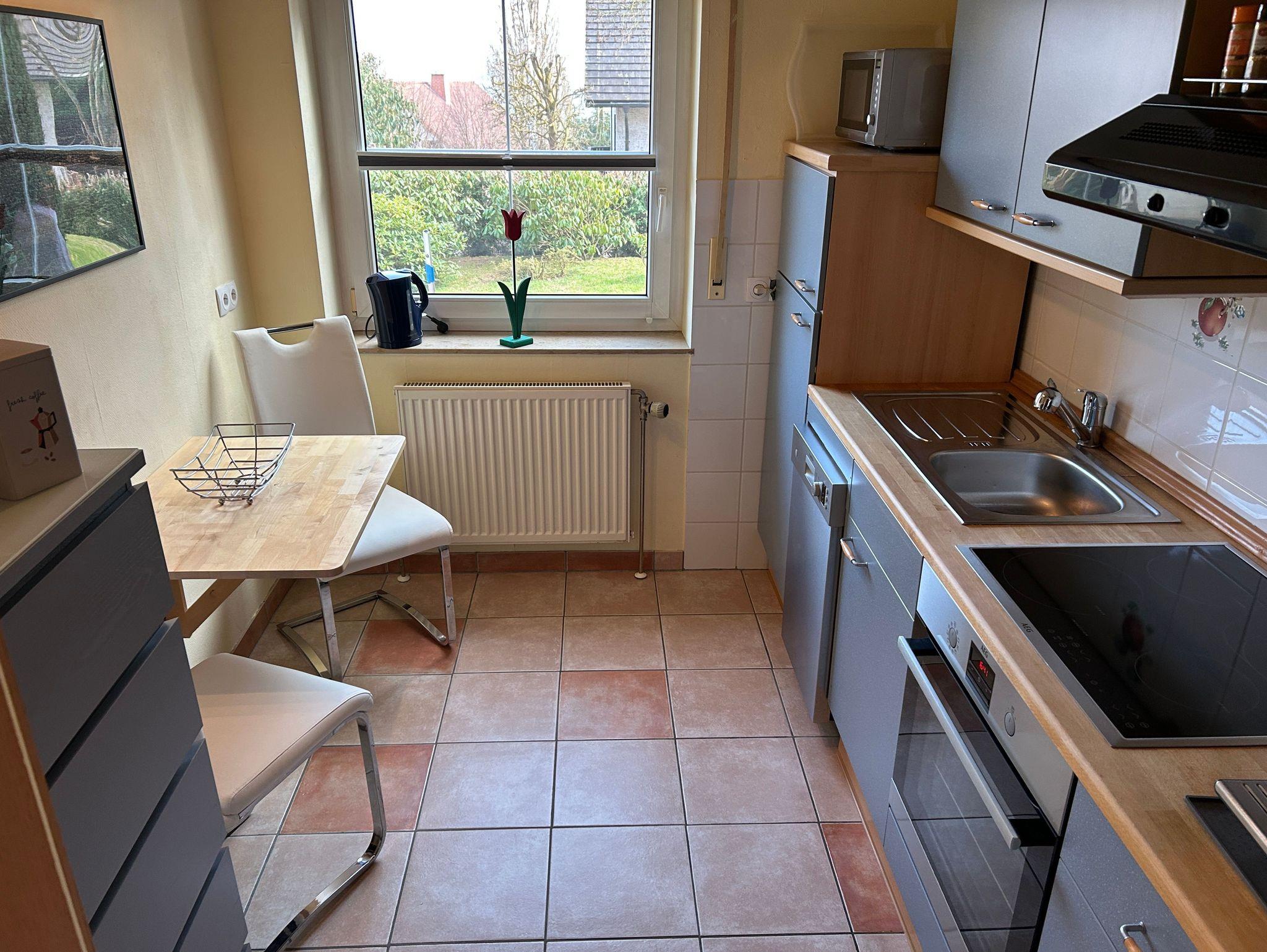 Wir vermieten eine gemütliche 50 m² Ferienwohnung für 2 Erwachsene und 1 Kind bis ca. 5 Jahre. Die Wohnung verfügt über ein Schlafzimmer mit Kinderbett, Wohn- und Essbereich mit TV, eine voll ausgestattete Küche mit Hochstuhl sowie ein Badezimmer mit Duschmöglichkeit