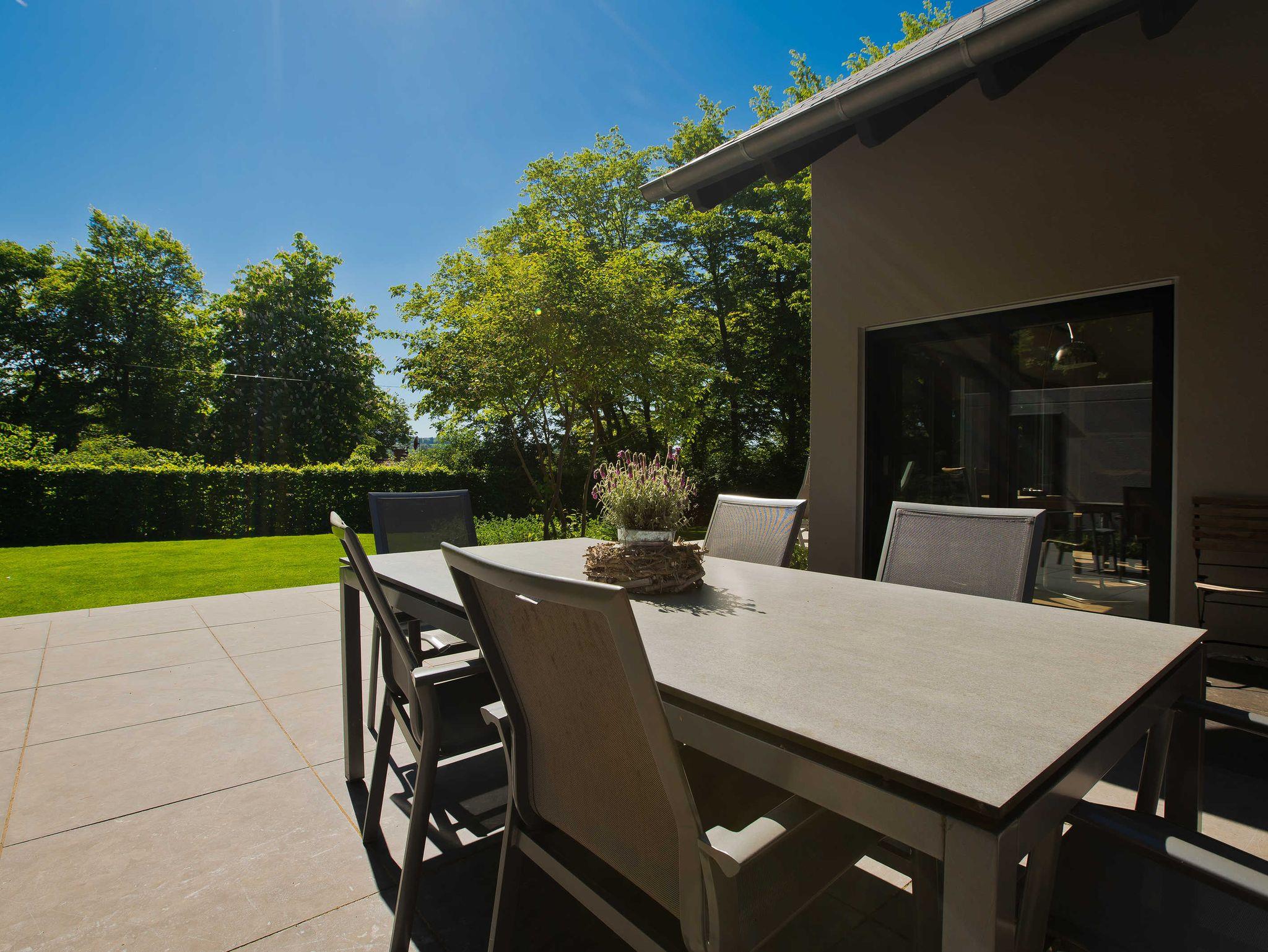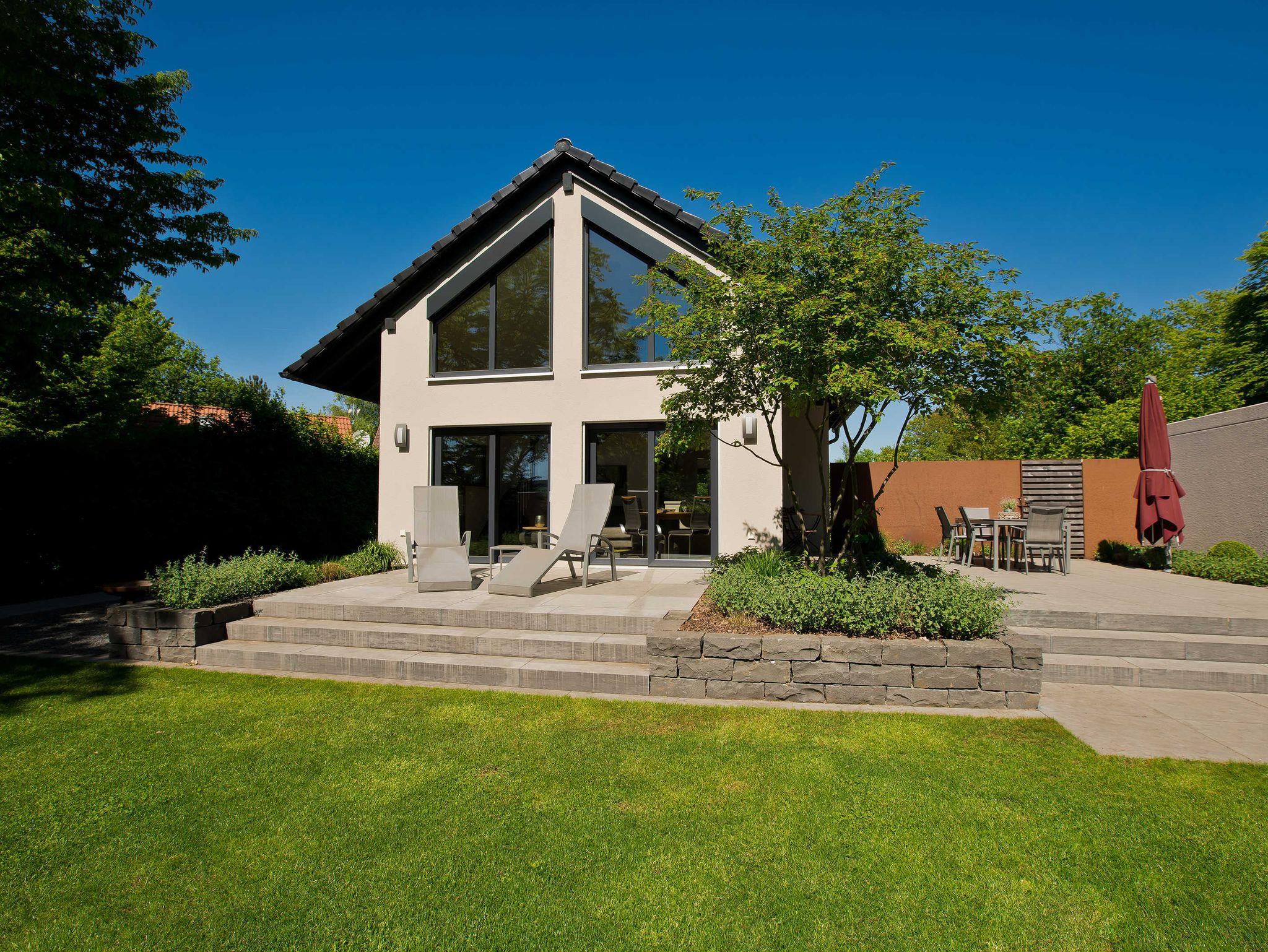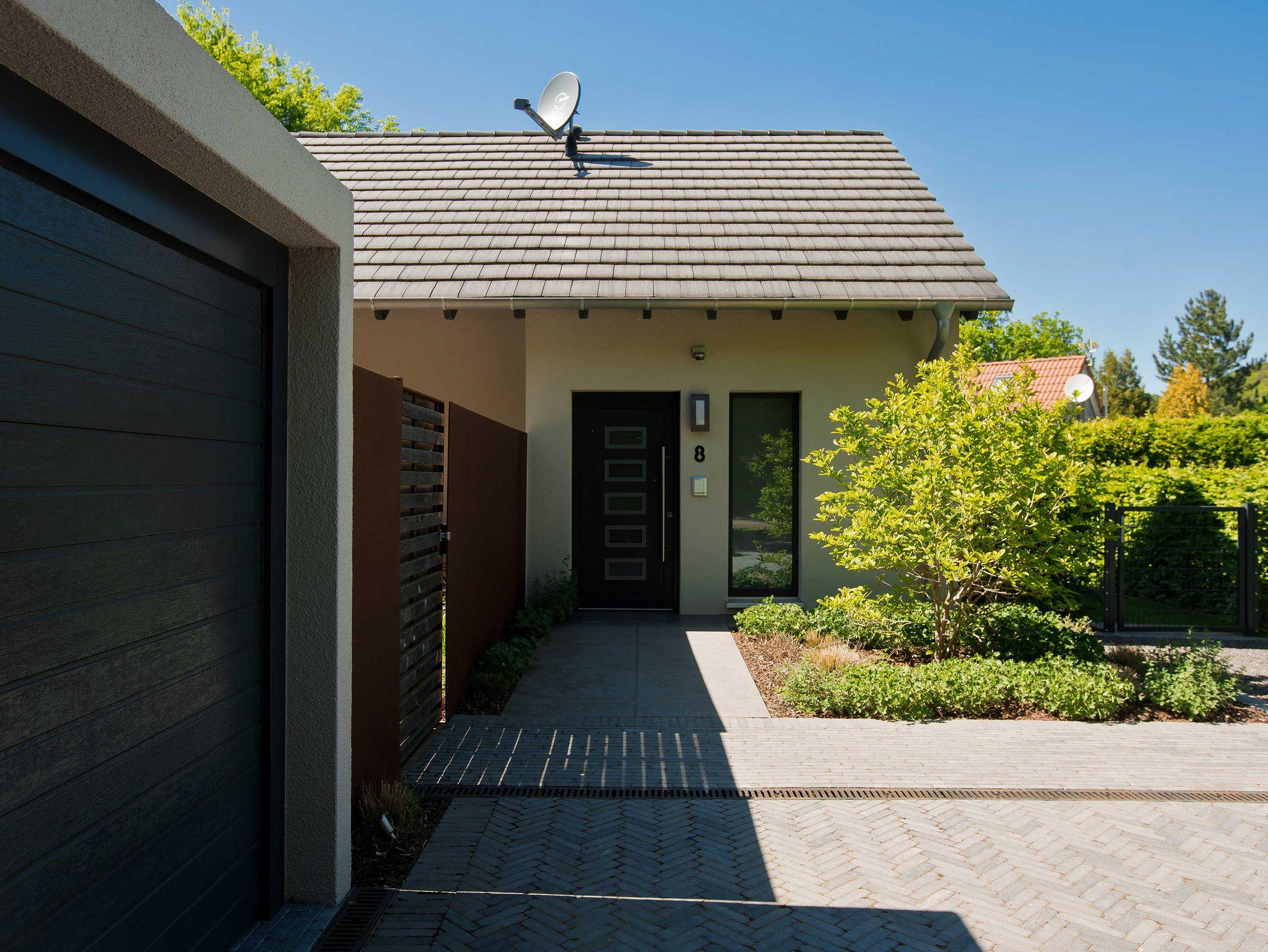 Das Ferienhaus bietet eine großzügige Außenanlage mit offener Einfriedung und einer frei stehenden Garage.