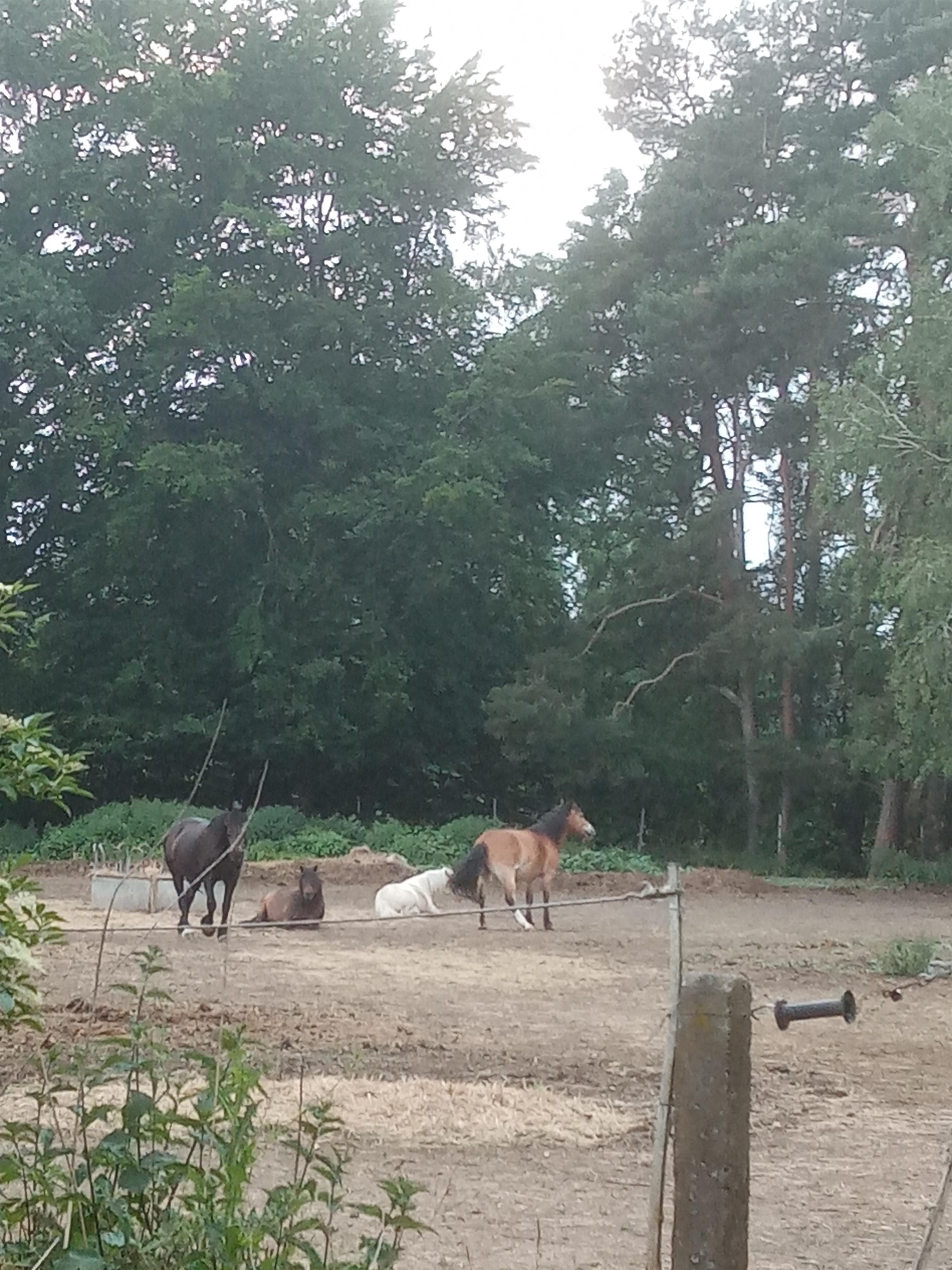 Die in artgerechter Haltung hier lebenden Ponys, Pferde, Schweine und Kaninchen freuen sich immer über einen Besuch. Bei den Fütterungen darf gerne von Groß und Klein mitgeholfen werden. Geführtes Ponyreiten für Kinder ist möglich. Unser kleiner Spielplatz, ausgestattet mit Klettergerüst, Schaukel, Sandkasten, Trettraktor, Kinderschubkarre, Sandspielzeug, Babyrutsche, Hüpftiere etc. bietet zusätzlichen Spaß für Ihre Kinder. Die mit gemütlichen Gartenstühlen und Liegen angelegte Grill-/Feuerstelle empfängt Sie zu schönen Abendstunden mit einem Hauch Wildwestromantik.