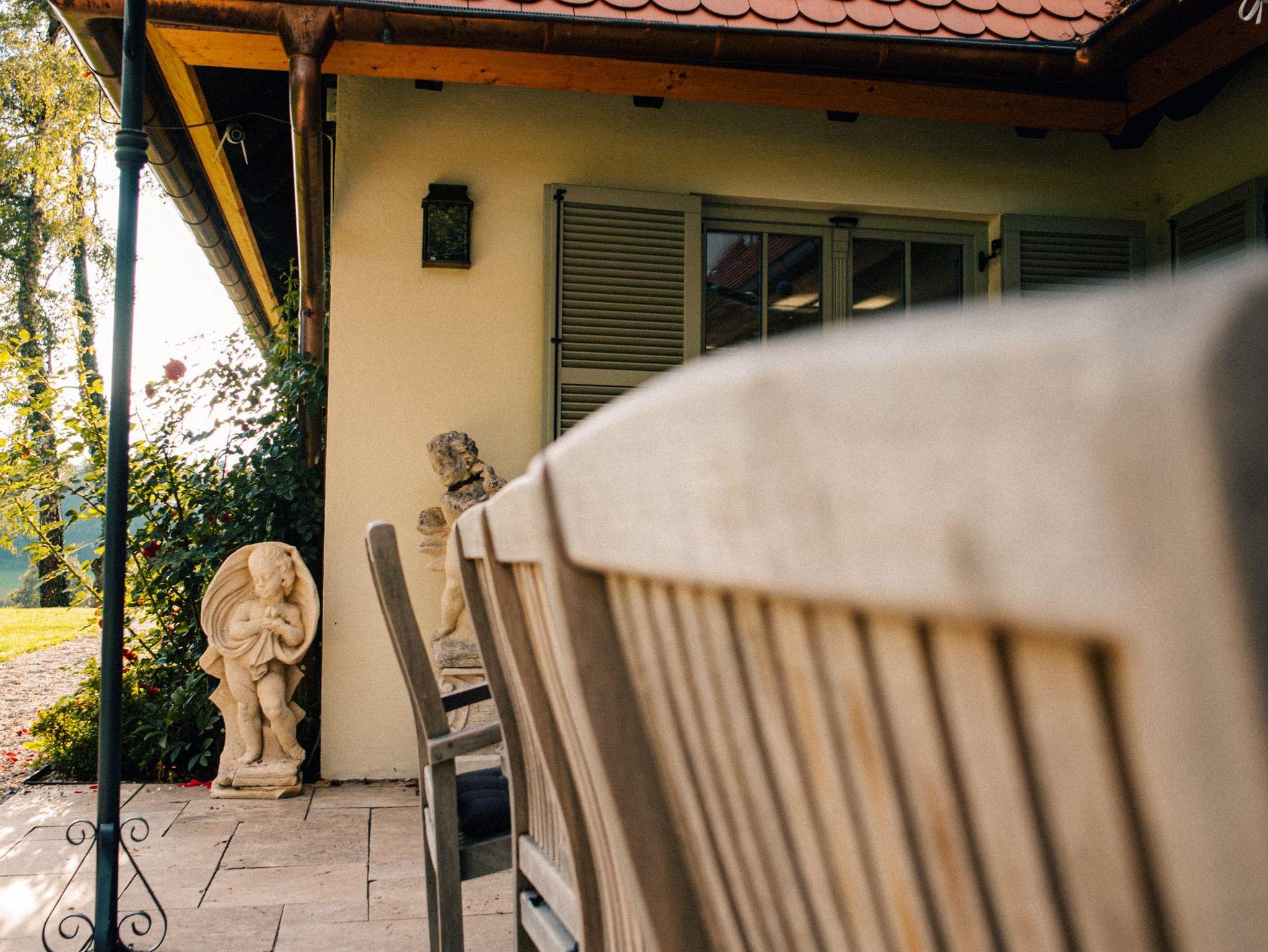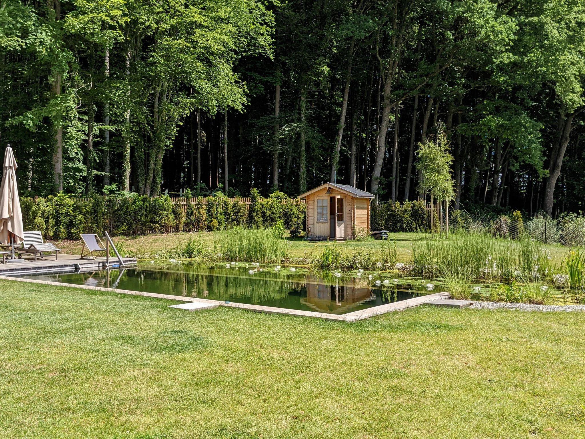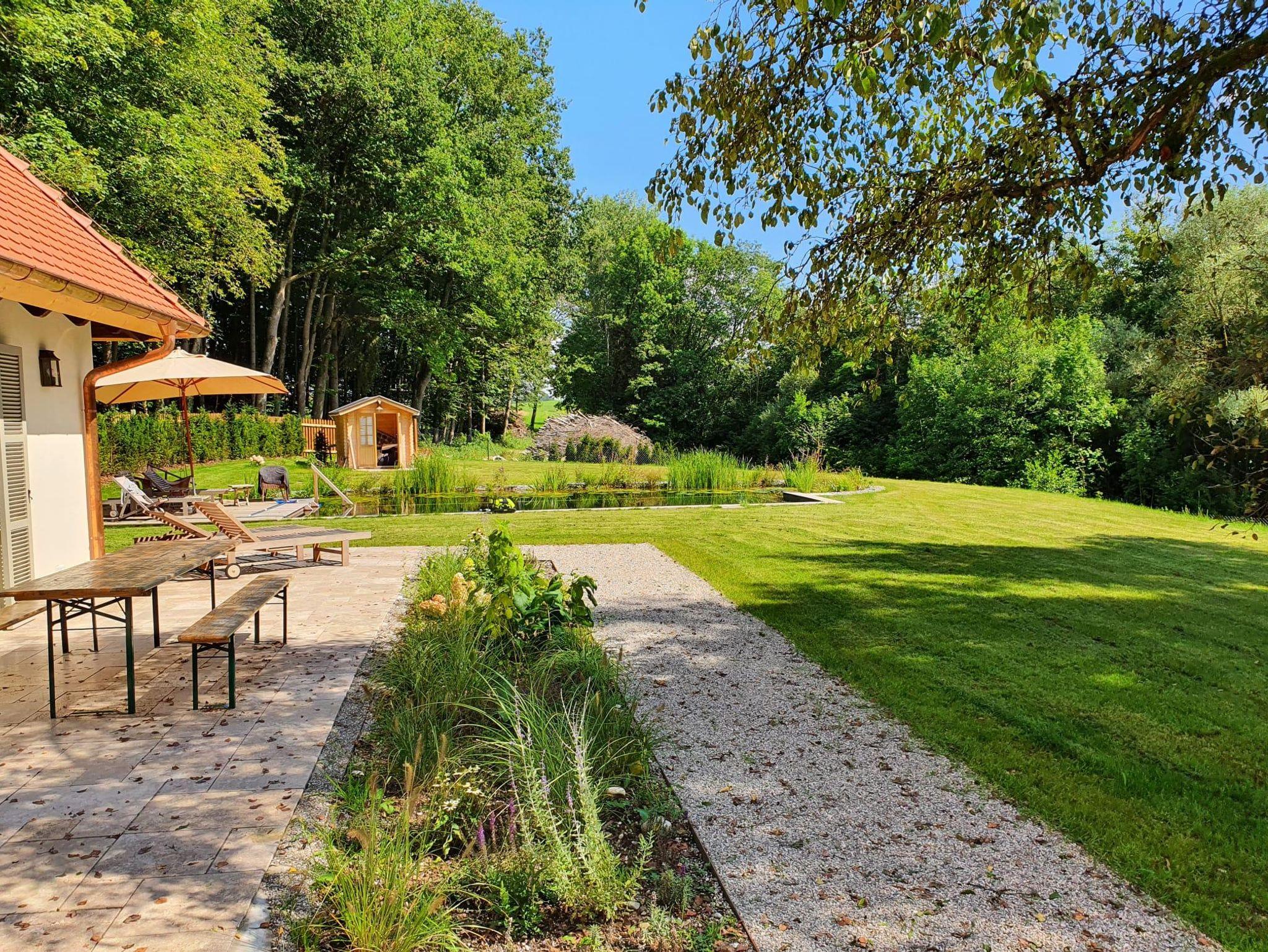 Die Einliegerwohnung verfügt über einen separatem Eingang. Die Wohnung unterteilt sich in eine eigene Küche und ein eigenes Bad, einem Schlafzimmer und einem Wohnzimmer. Die Küche ist mit hochwertigen Geräten ausgestattet. Über die Wohnung hat man Zugang zum großen Garten, sowie auf die eigene Terrasse. Auf dieser findet man gemütliche Sitzgelegenheiten sowie einen Grill für gemütliche Abende. Für die warmen Sommermonate hat man natürlich auch Zugang zum Naturpool.