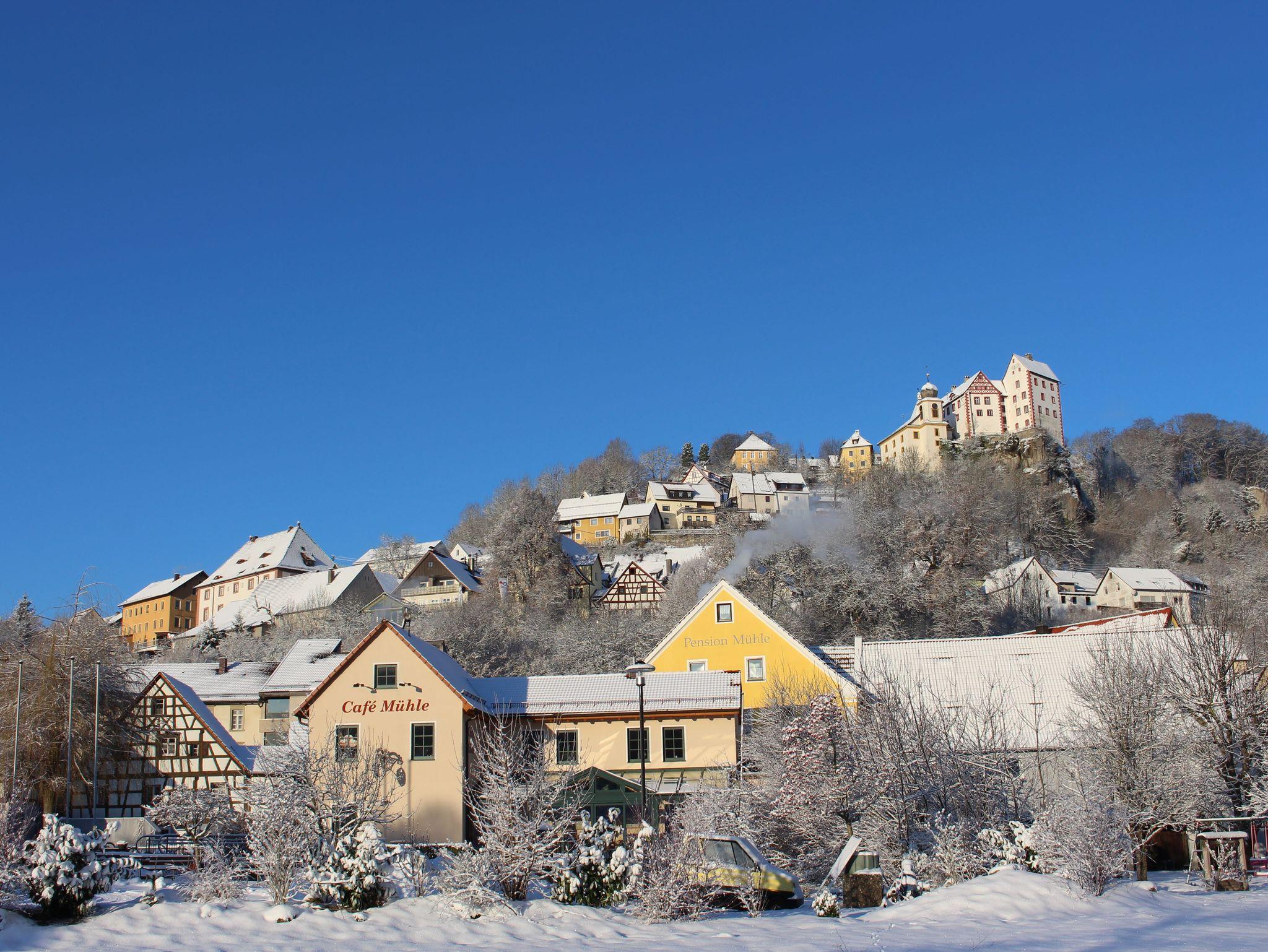Ferien in der Fränkischen Schweiz im Land der Burgen, Höhlen und Mühlen! Unser Haus war eine dieser ehemalige Mühle im romantischen Tal der forellenreichen Trubach. Wo sich früher das rege Leben der Müller abspielte, finden Sie heute behaglich eingerichtete Gästezimmer mit Du/WC und Kabel-TV, sowie 10 gemütliche Ferienwohnungen in der Pension Mühle und in unserem 50 m entfernten Neumeyerhaus.