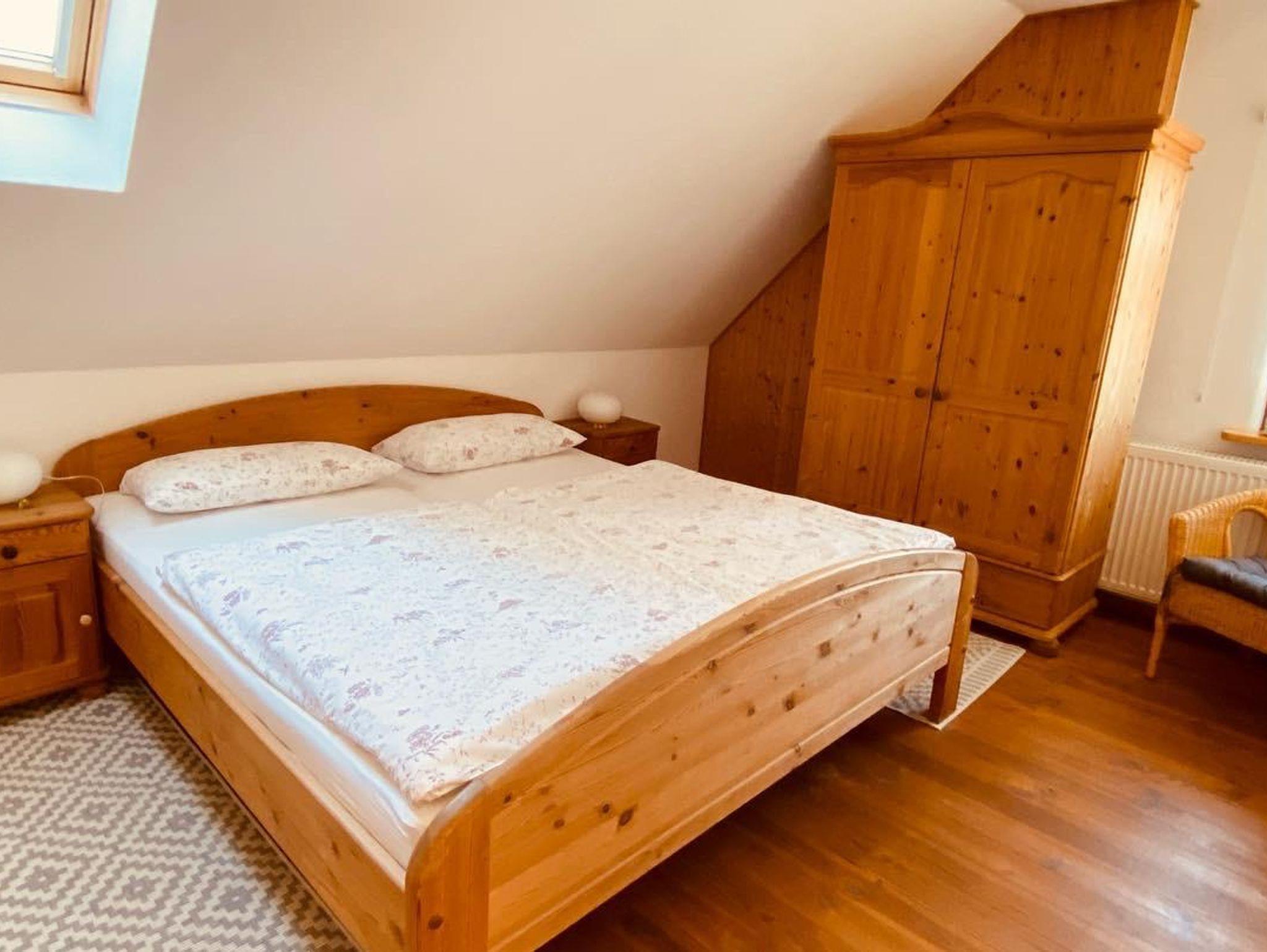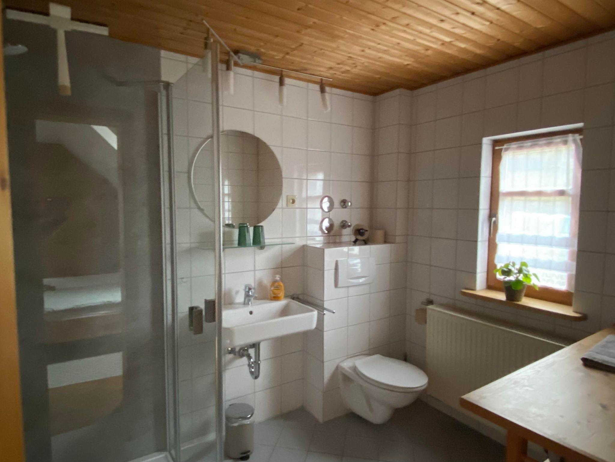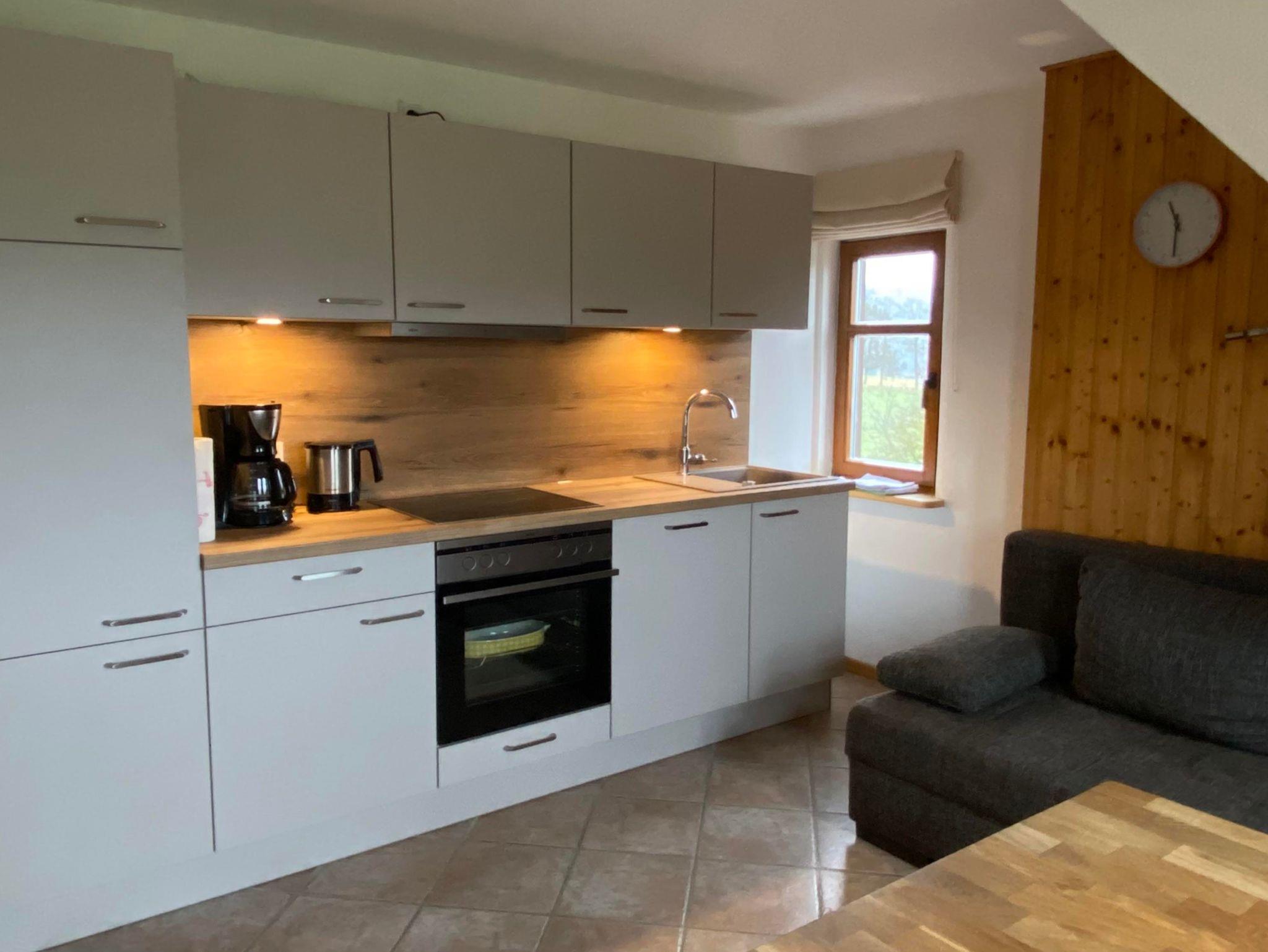 Die gemütliche Ferienwohnung im zweiten Stock bietet dir eine atemberaubende Aussicht auf die wunderschöne Landschaft der Rhön, die du schon beim Frühstücken genießen kannst. In der einladenden Wohnküche findest du ein bequemes Sofa, das auch als Schlafsofa genutzt werden kann, sowie eine Sitzgruppe. Die Küche ist vollständig ausgestattet mit Backofen, Wasserkocher, Kaffeemaschine, Toaster, Eisfach und vielem mehr. Das Schlafzimmer verfügt über ein komfortables Doppelbett. Für den kleinen Nachwuchs stellen wir Dir gerne ein Reisebettchen kostenfrei zur Verfügung.