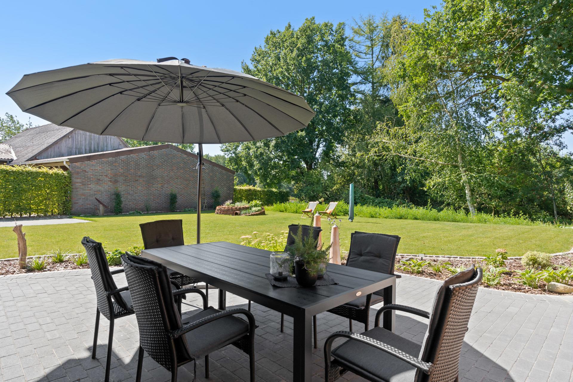 Es gibt Sitzmöglichkeiten im Außenbereich und eine große Grünfläche. Ein Grill kann aufgestellt werden. Das Haus kann nur komplett gebucht werden, und die Kosten pro Tag beginnen bei 180,00 Euro. Die Endreinigung kostet 120,00 Euro, und die Mindestmietdauer beträgt 2 Übernachtungen. Die Anreise ist zwischen 16:00 und 18:00 Uhr (nach Absprache auch später) möglich, und die Abreise sollte bis 10:00 Uhr erfolgen. Bei einer Langzeitmiete wird das Haus alle 10 Tage kostenpflichtig gereinigt.