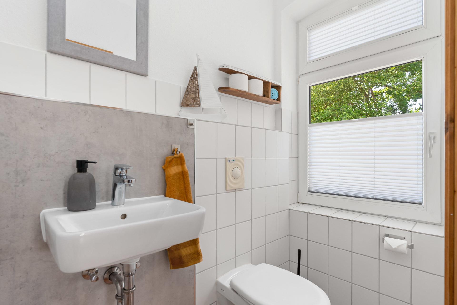 Das Dat Schniederhus ist ein freistehendes Ferienhaus in Deutschland, das Platz für 4-6 Personen bietet. Es erstreckt sich über zwei Etagen mit insgesamt 144 m² Wohnfläche. Im Erdgeschoss befindet sich eine gut ausgestattete Küche mit Essbereich, ein geräumiges Wohnzimmer, ein Gäste-WC, ein Schlafzimmer mit einem 1,40 m breiten Bett und ein großzügiger Flur.