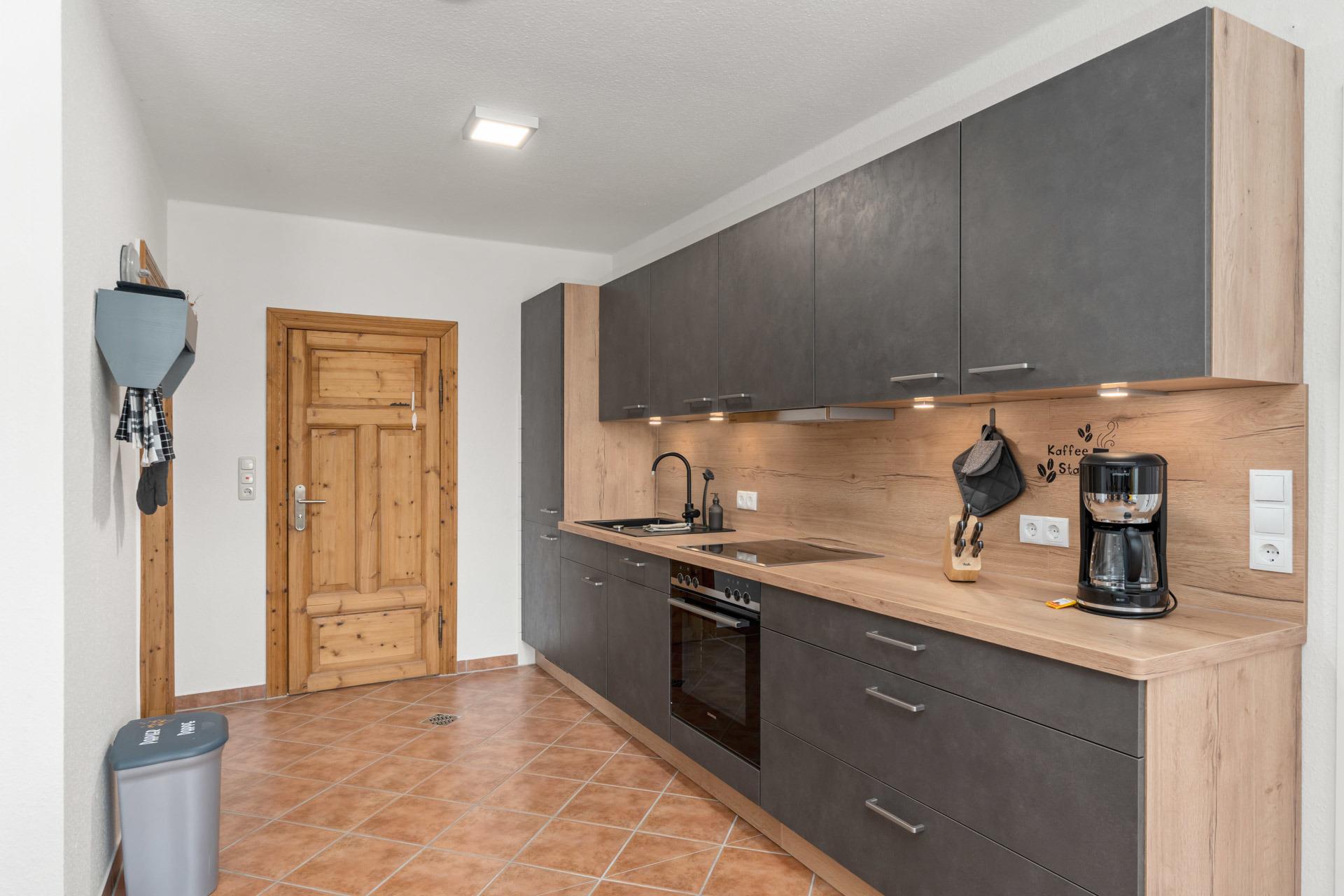 Die Küche ist sehr gut ausgestattet und enthält einen Kühlschrank, einen Gefrierschrank, eine Spülmaschine, einen Backofen, ein Ceranfeld mit 4 Kochfeldern, eine Mikrowelle, eine Kaffeemaschine, einen Wasserkocher, einen Pürierstab, einen Toaster und einen großen Esstisch mit 6 Stühlen. Das Wohnzimmer verfügt über einen Flachbildfernseher, einen Radio/CD-Player, einen Fußballkicker, Spiele für Groß und Klein sowie verschiedene Sitzmöbel und Antiquitäten.