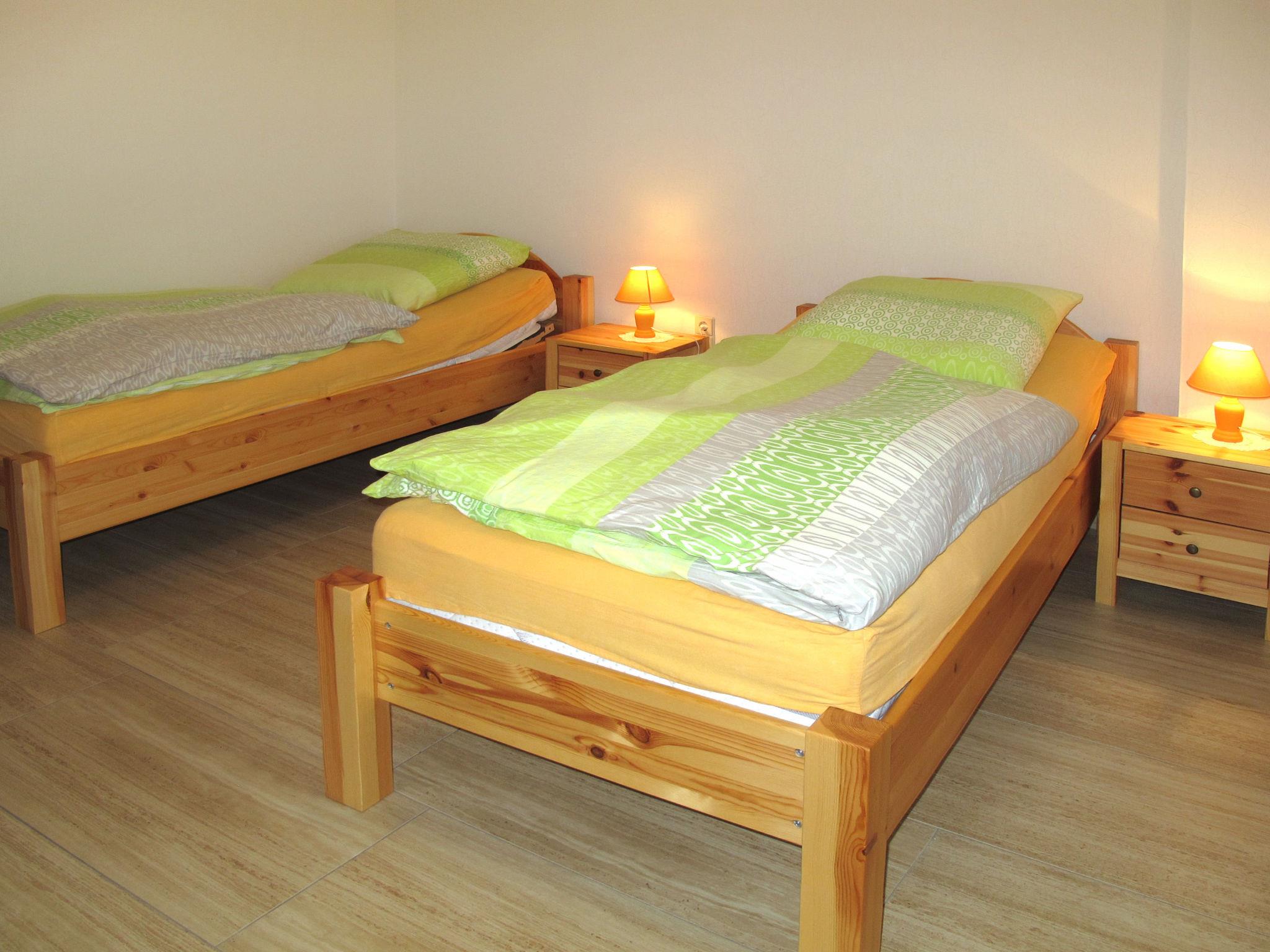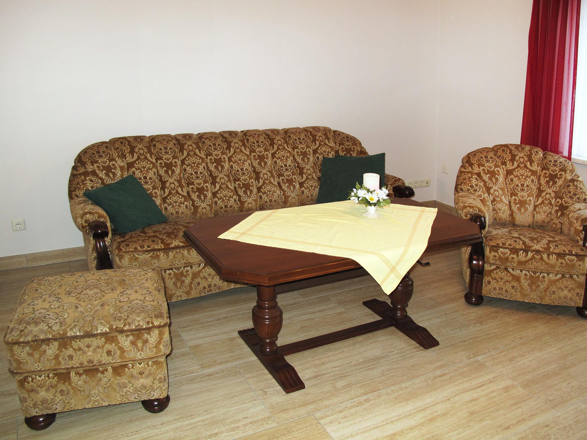 "Am Burgberg", 3-room apartment 80 m2, on the ground floor. Practical furnishings: living room with winter garden with dining table, satellite TV and radio. Exit to the terrace. 1 room with 1 bed. 1 room with 2 beds. Kitchen (oven, dishwasher, 4 ceramic glass hob hotplates, toaster, kettle, microwave, electric coffee machine) with dining table. Shower/WC. Gas heating, underfloor heating. Terrace roofed, patio, small garden 150 m2. Terrace furniture, barbecue (portable). Facilities: children's high chair, baby cot. Internet (WiFi, free). Parking (1 car) at the house. Please note: non-smokers only. Maximum 1 pet/ dog allowed. Smoke alarm.