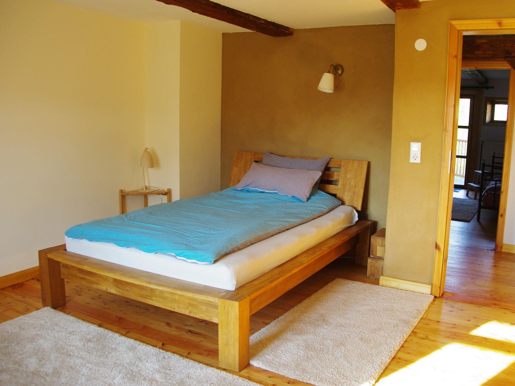 Das 2.Schlafzimmer bietet 1 Bett auf einer Schlafempore (140cm Breit) und einem franz.Doppelbett (140cm Breit). Dieses Zimmer verfügt über einen kleinen Balkon, Schreibtisch und einem Sessel.