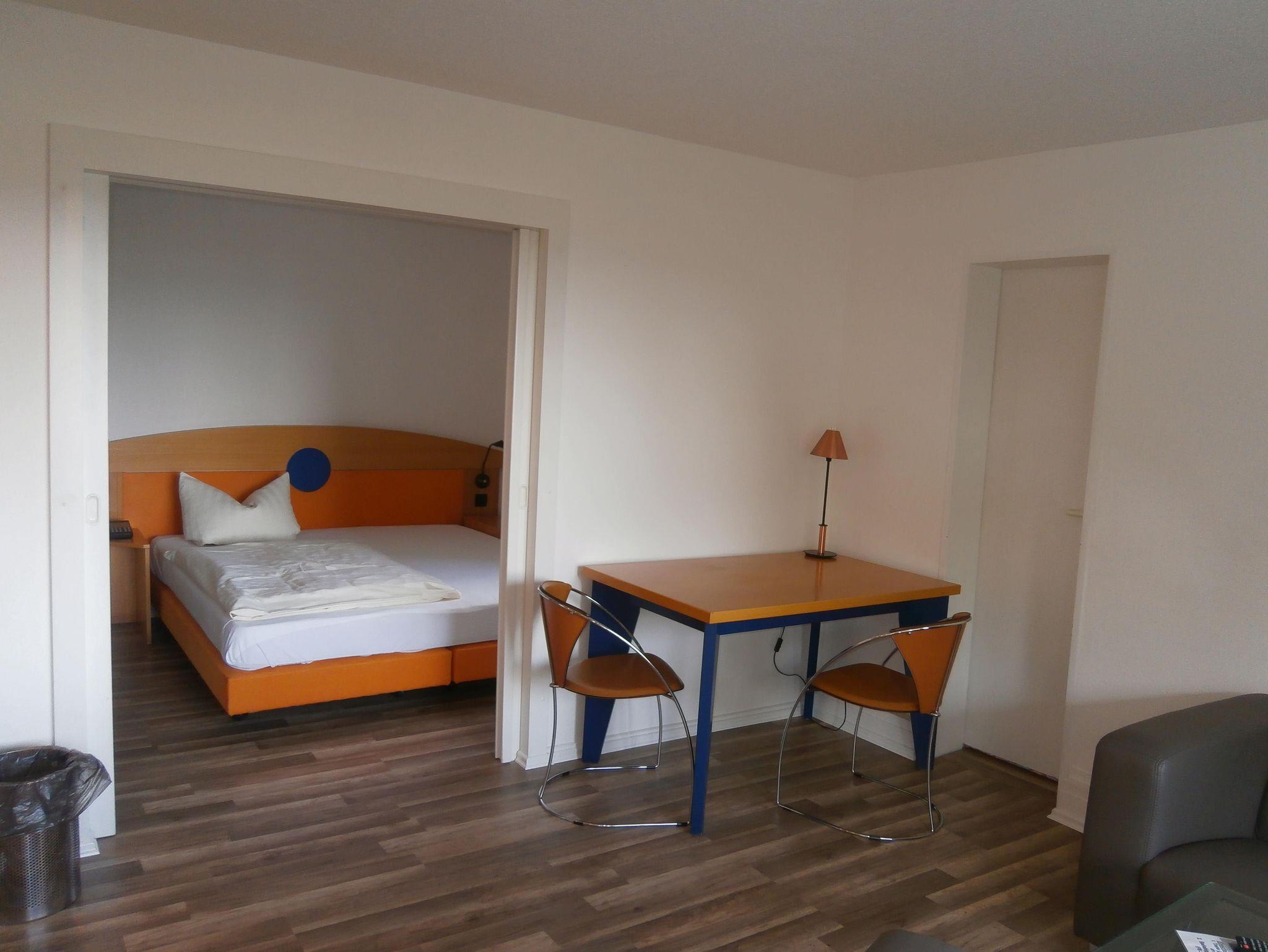 Doppelzimmer (ca. 30 qm) in komfortablem Doppel - Bungalow, d.h. es sind pro Bungalow zwei separate Doppelzimmer vorhanden. Jedes Doppelzimmer hat einen Wohnbereich mit Schreibtisch, bequemen Sitzgelegenheiten, kleines TV mit DVD-Player und lädt zum Verweilen ein. Der Schlafbereich verfügt über ein großes Doppelbett und das Badezimmer mit Waschtisch, WC und Dusche schließt sich daran an. Die Miniküche hat einen Zwei-Platten E-Herd, Wasserkocher und Kühlschrank sowie Töpfe/Geschirr. Eine eigene Terrasse mit Sitzplatz und einem herrlichen Blick in die umliegende Natur läd zum Relaxen ein und rundet das Gesamtbild ab. Über das Gelände verteilt gibt es mehrere WLAN-Sender, so dass dies in allen Zimmern vorhanden ist.