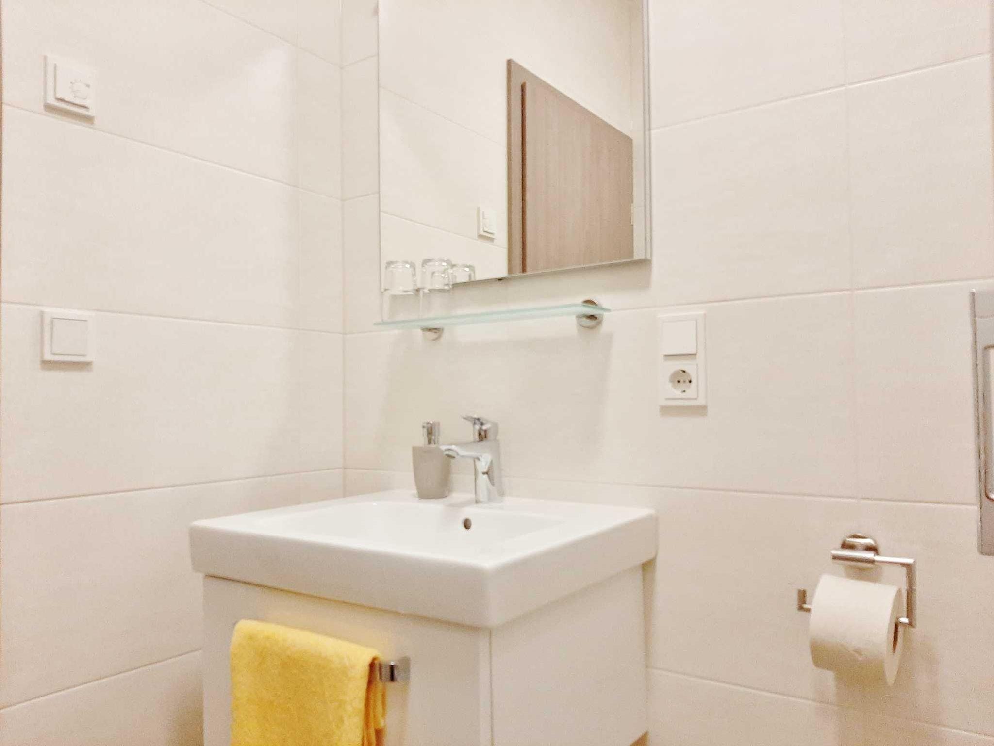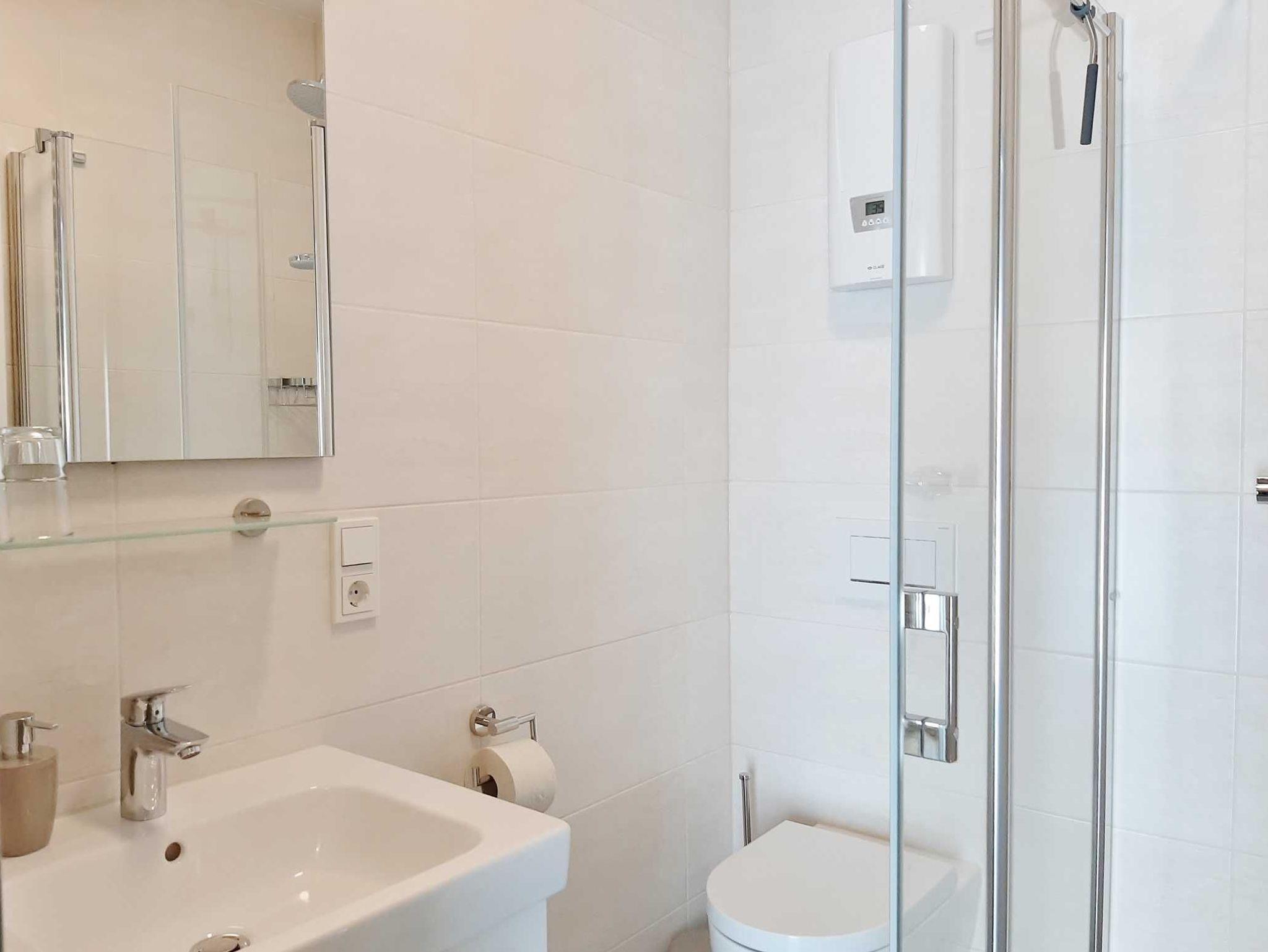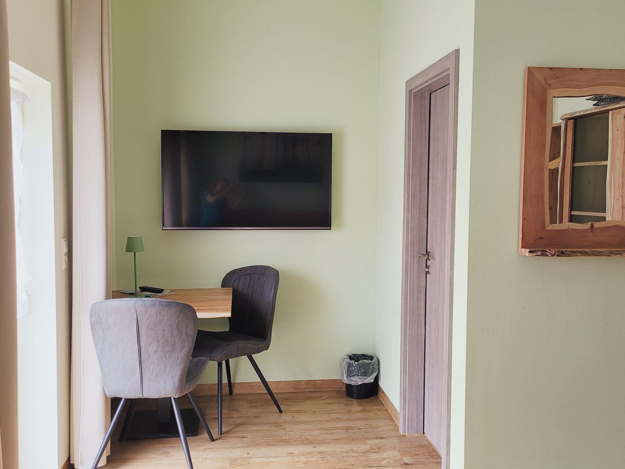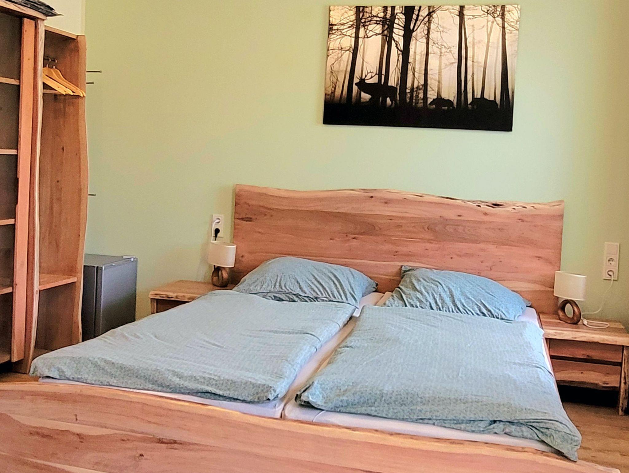 Das angenehm gestaltete Nichtraucher Doppelzimmer ist mit Echtholzmöbeln im Landhausstil eingerichtet. Zur Ausstattung gehört ein Doppelbett (1,80 × 2,00 m), TV-Flachbildschirm und Fußbodenheizung. Im Bad steht den Gästen eine Dusche und ein WC zur Verfügung. Eine Terrasse mit Sitzmöbeln wird von Urlaubern gern genutzt. Das Mitbringen eines kleinen Hundes ist gestattet, ausgenommen sind dabei die Listenhunde. Auf Anfrage ist die Aufstellung eines Reise-Babybettchens möglich.