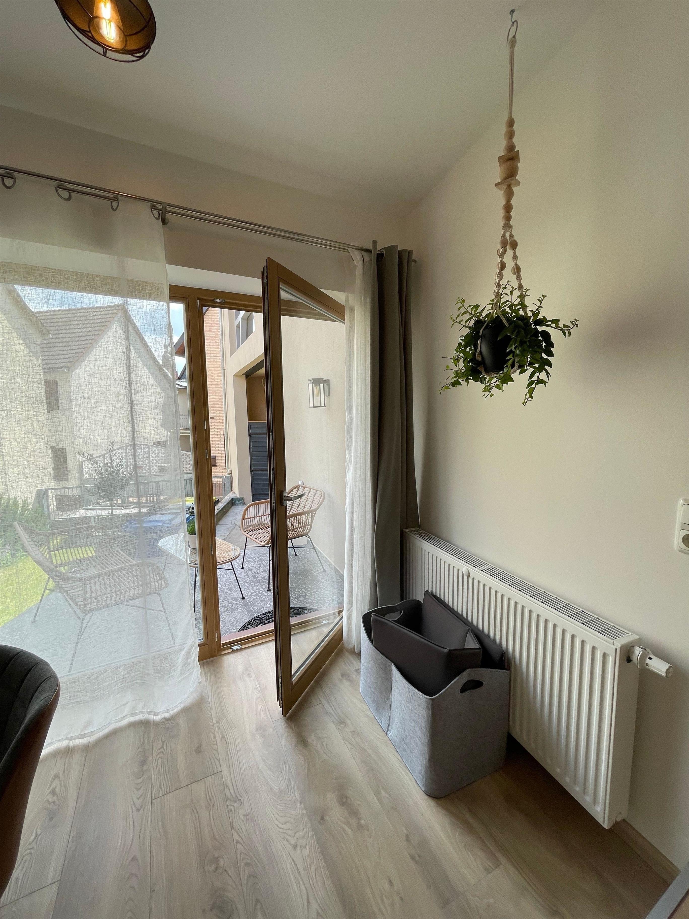 Der Zugang zum Haus erfolgt über einen kleinen, halbüberdachten Innenhof, der durch ein Hoftor geschützt ist. Es ist eine Türsprechanlage mit Video-/Kamerafunktion installiert.