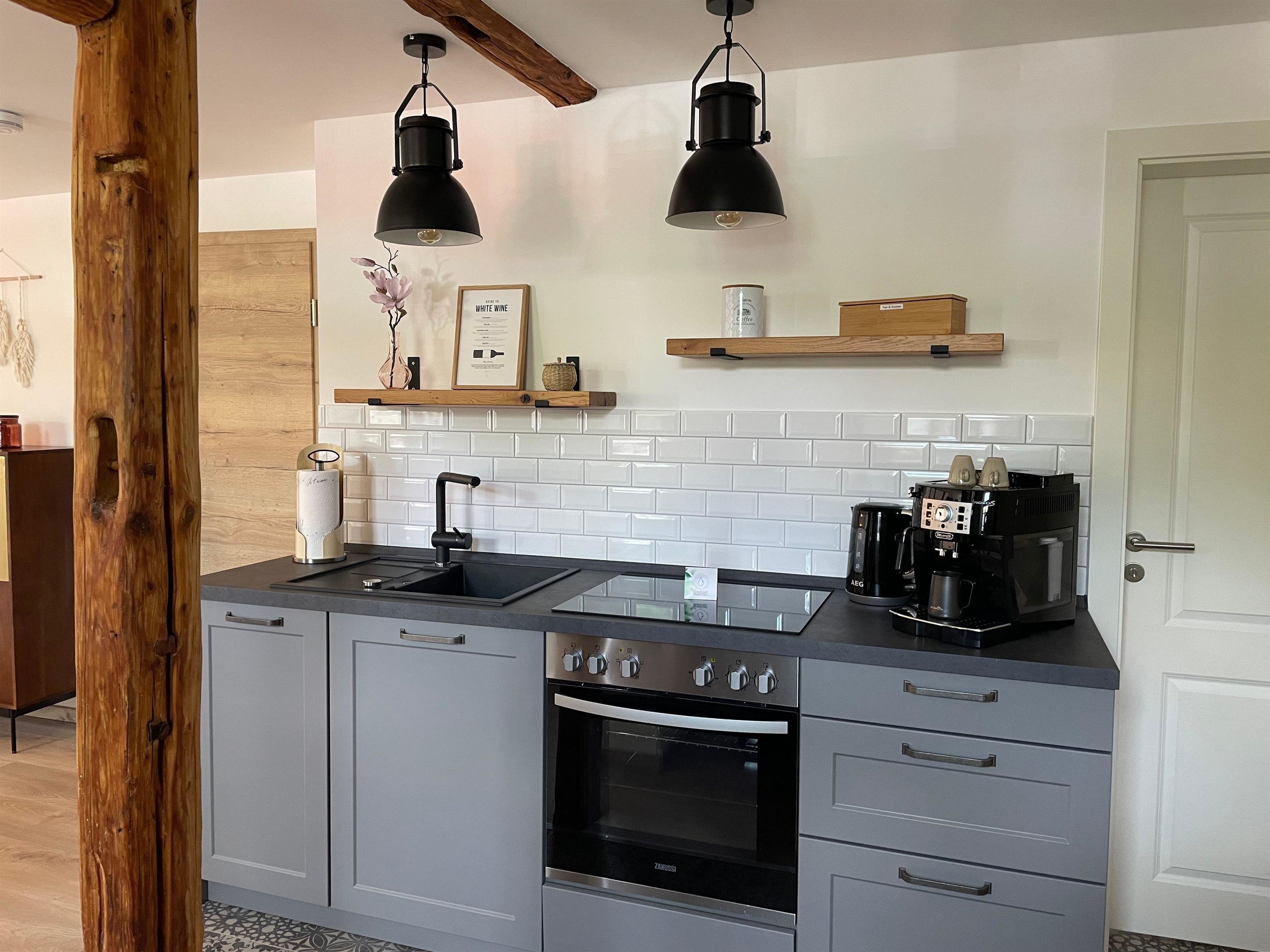 Neben einem hellen Wohnbereich, verfügt die 58m² große Ferienwohnung über einen charmanten vollausgestattteten Ess- & Küchenbereich, ein großzügiges Tageslichtbad, sowie ein Schlafzimmer mit Option auf ein Beistellbett.