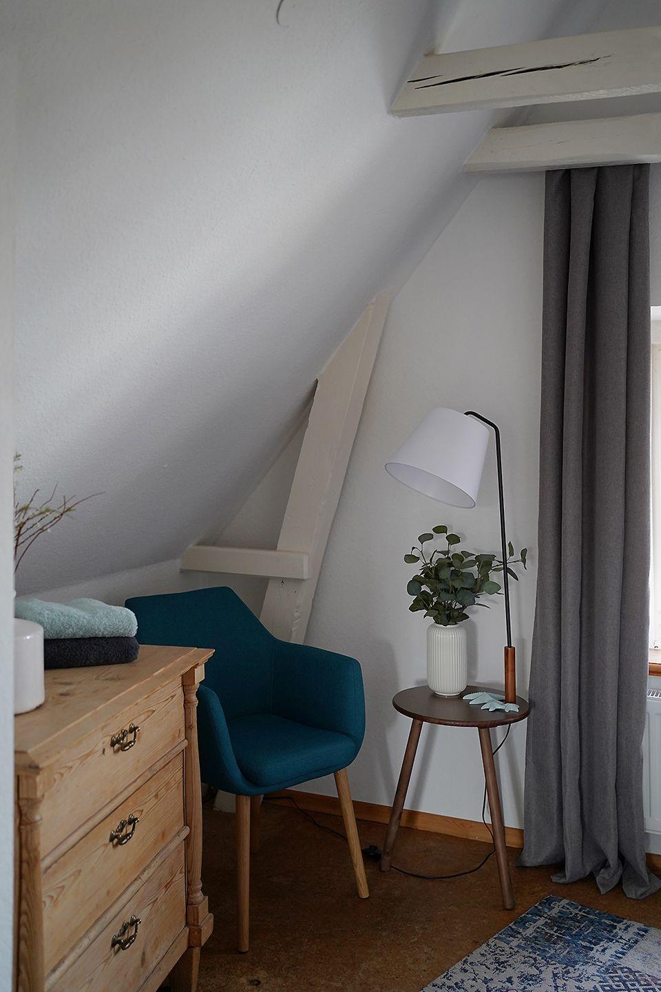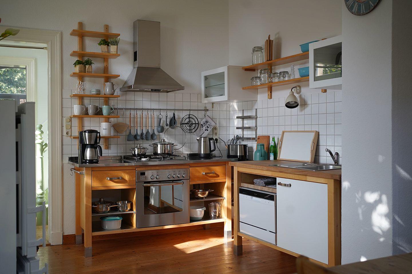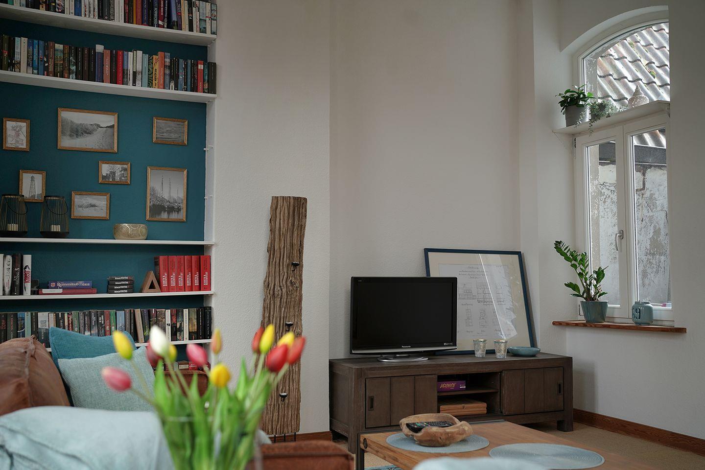 Zum Hof hin bietet die Wohnküche mit Balkon tolle Möglichkeiten für gemeinsames Kochen oder das Frühstück in der Morgensonne. Im Dachgeschoß liegen die zwei großzügigen Schlafzimmer mit jeweils einem Doppelbett und einem tollen Blick über die Emder Innenstadt. Zwischen den Zimmern ist das Wannenbad des Hauses angeordnet.