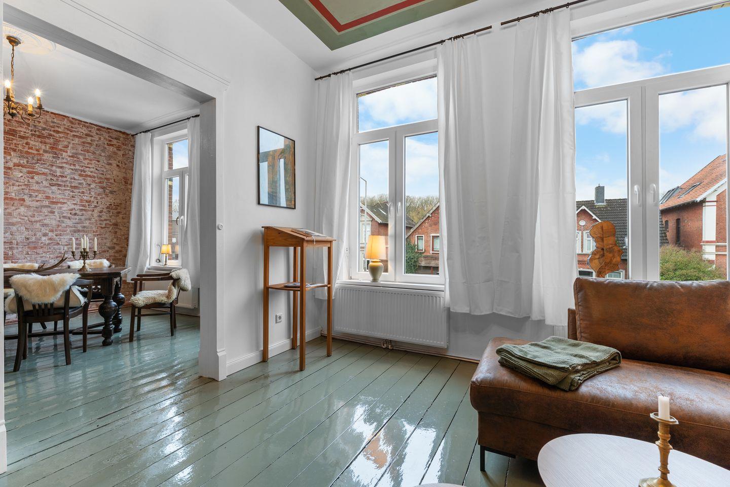 In einem Emder Stadthaus aus dem Jahr 1897 gelegen, erhebt sich die Ferienwohnung BELETAGE im ersten Obergeschoss - und macht ihrem Namen alle Ehre.