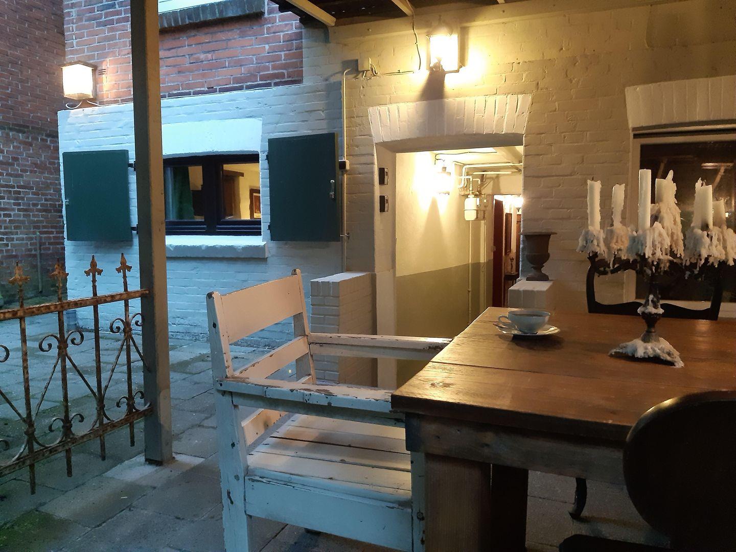 Die Küche verbindet Funktionalität mit Charme. Sie bietet zahlreiche Annehmlichkeiten und überrascht mit liebevollen Details, wie etwa einer Abzugshaube, deren Front dem typischen Greetsieler Giebel nachempfunden ist und aus Teilen einer alten Kommode gefertigt wurde. Überhaupt dominieren antike Möbel und ausgewählte Einzelstücke die gesamte Wohnung und verleihen ihr Seele und Charakter.