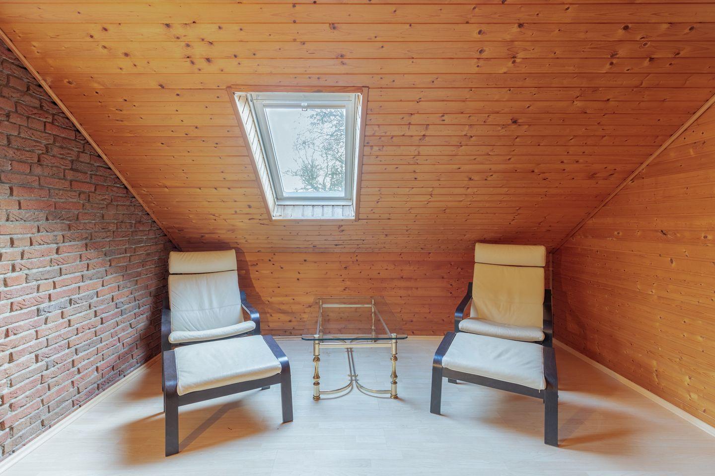 In dem großzügigen, eingezäunten und naturbelassenen Garten können Sie auf der windgeschützten Terrasse den Tag auf Gartenstühlen ausklingen lassen.