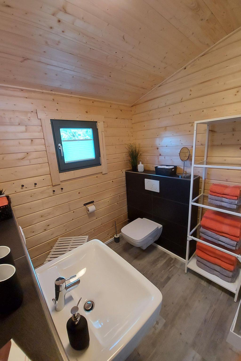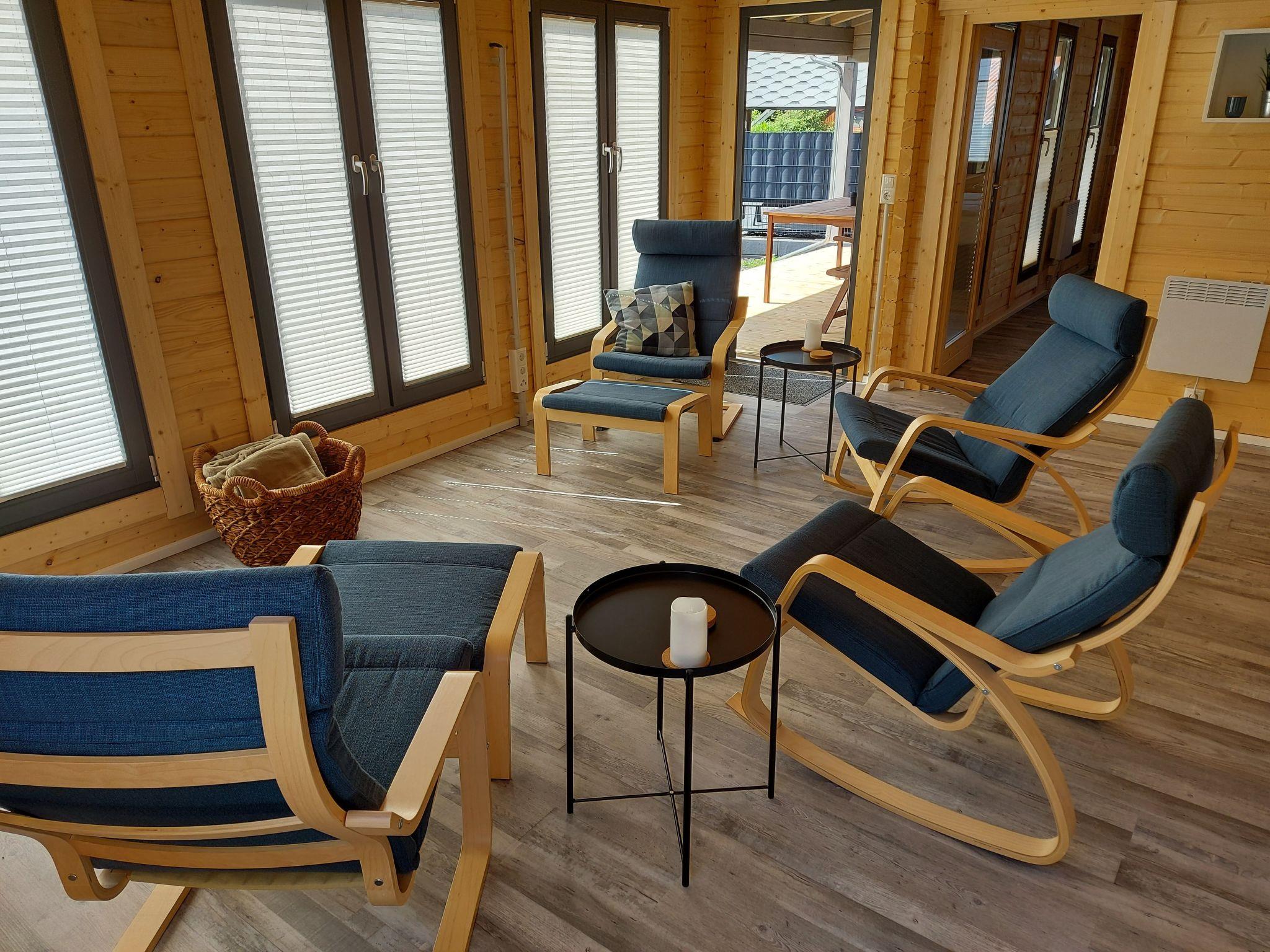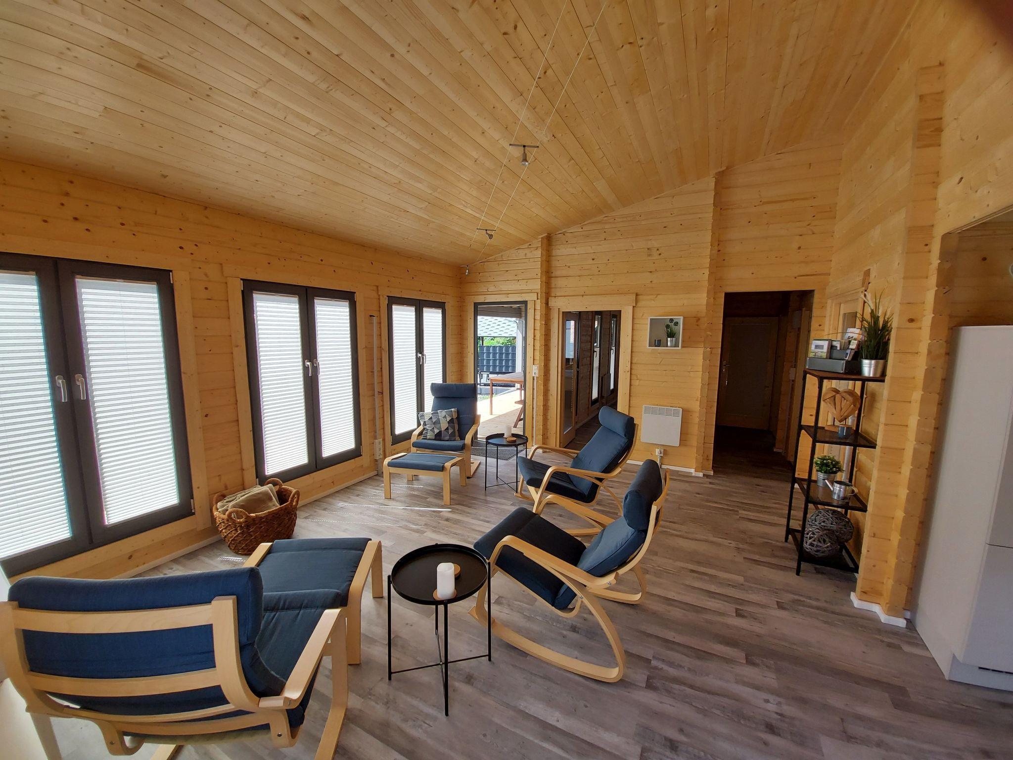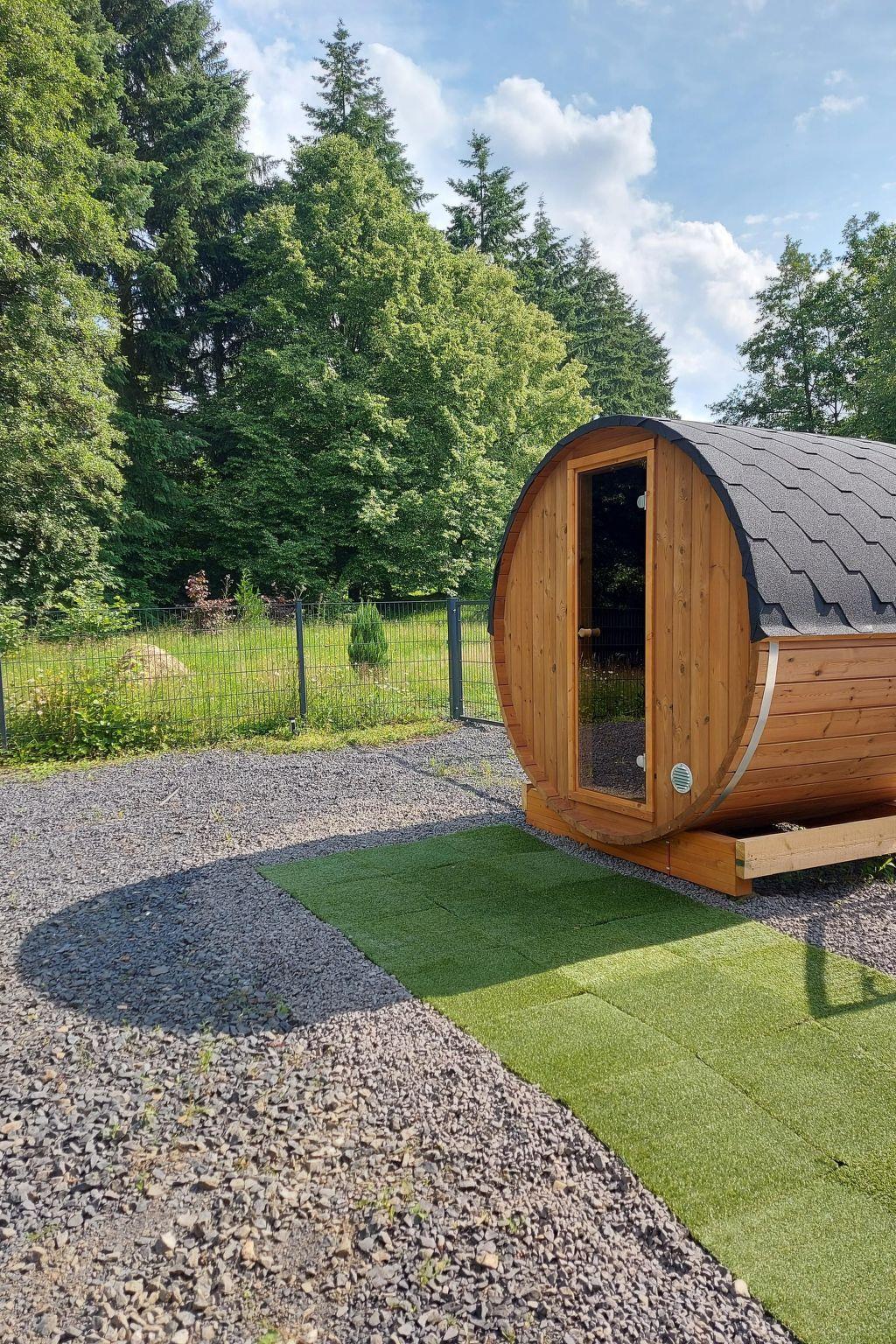 Our holiday home is located in a weekend house area in the Westerwald. The holiday home is available for sole use with a fenced property area of approx. 330 square metres. In the outdoor area there is a terrace sauna for 1-2 persons. The ground is typical Westerwald basalt.
